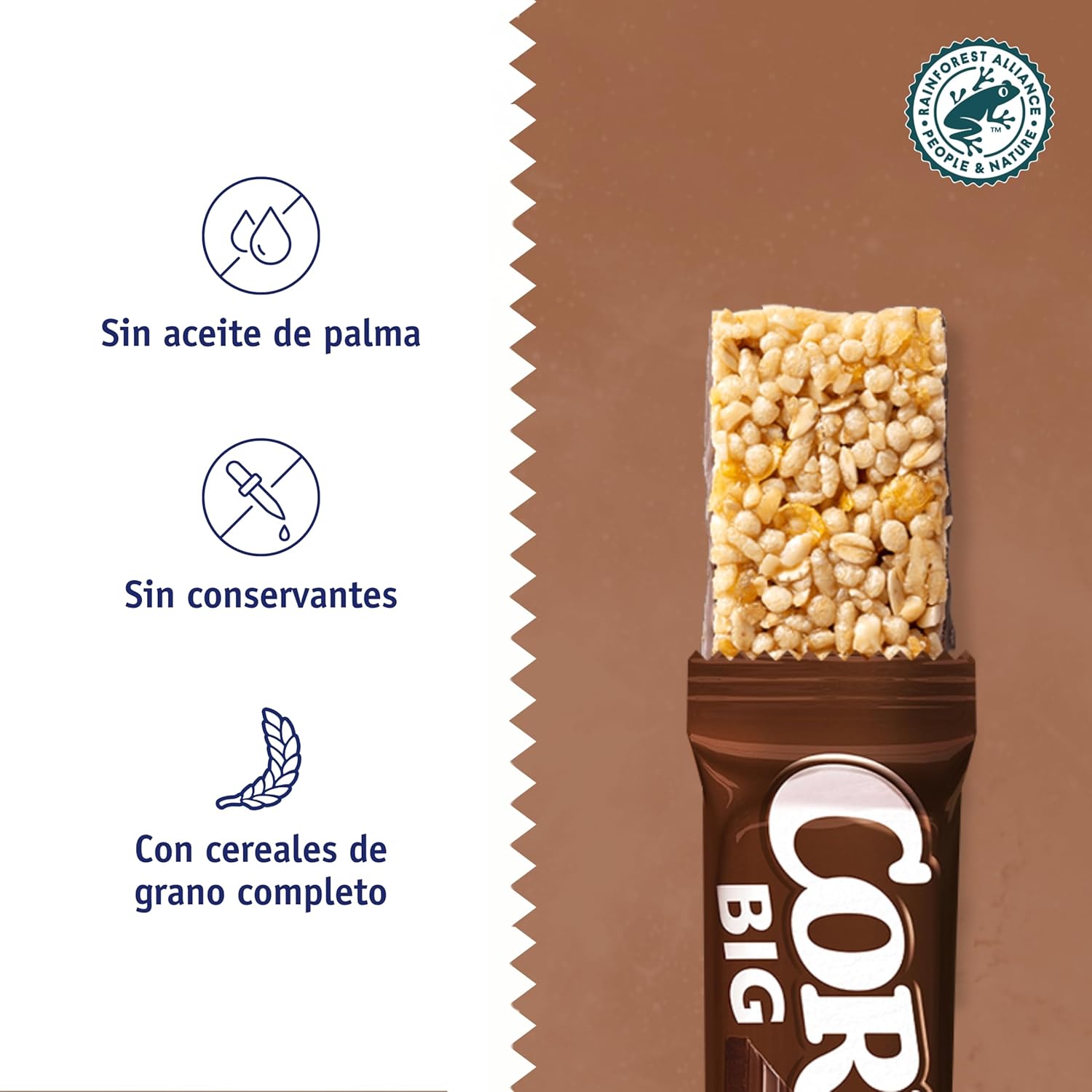 Corny Big, Bar No Added Sugars Chocolate Flavor, Larger, Classic and Intense Flavor, Crispy Texture, Pack 24x50g
