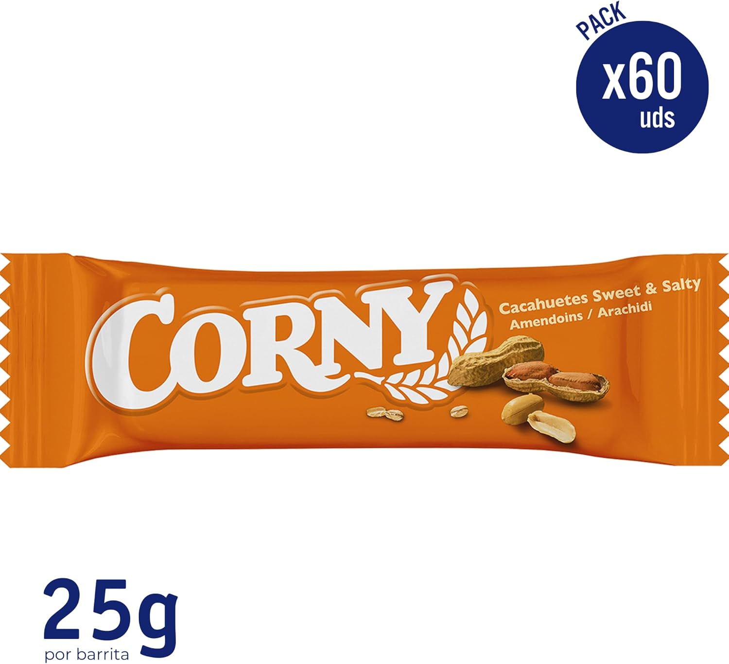 Corny, Sweet and Salty Peanuts Bar, Sweet and Salty Balance, No Preservatives or Palm Oil, Pack 10 cases with 6 bars 10x(6x25g)