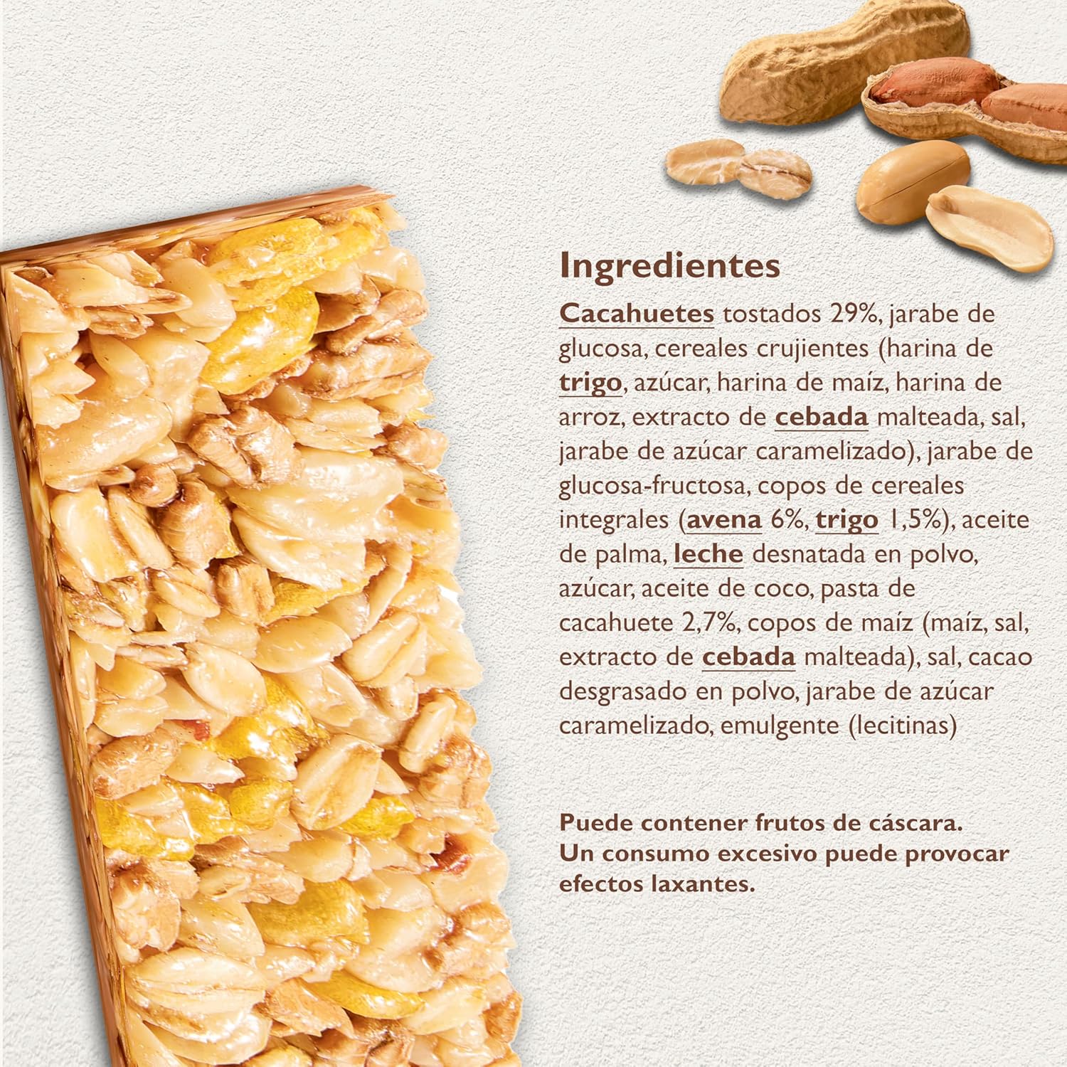 NATURAL ROASTED PEANUTS: With 29% peanuts, this bar provides an intense, crispy and natural flavor, as well as an ideal energy input to keep you active throughout the day.