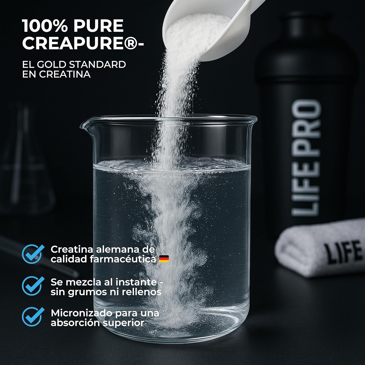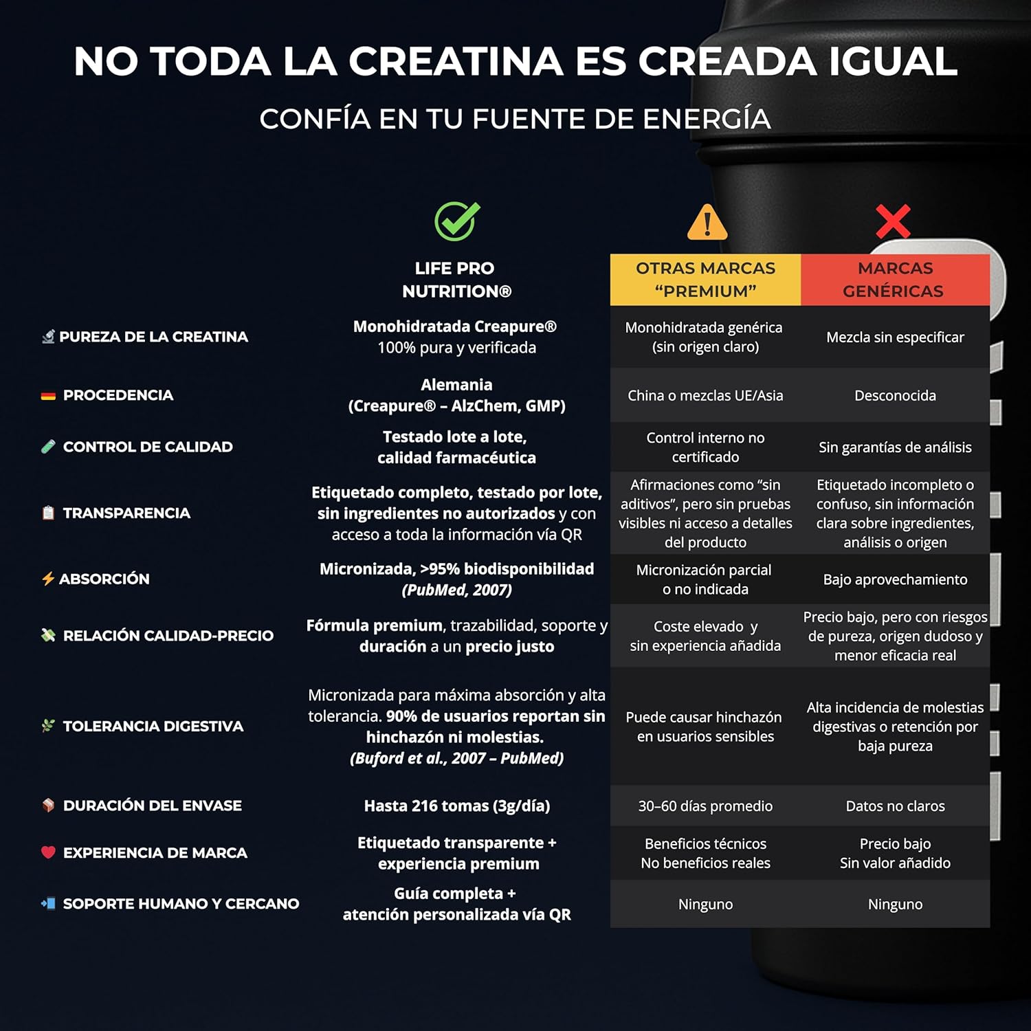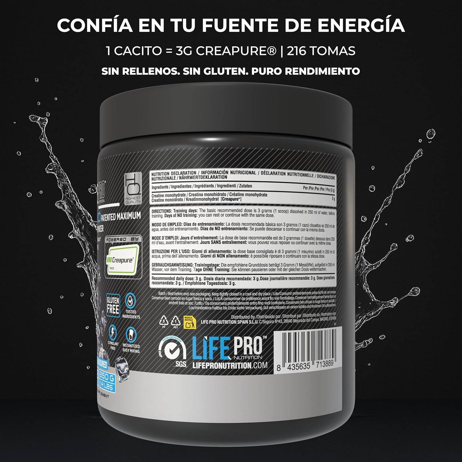 SUPERIOR ABSORPTION – MICRONIZED CREATINE CREAPURE FOR MAXIMUM BIOAVAILABILITY: Easy to dissolve in liquids without lumps and with an absorption rate above 95%, Creapure ensures efficacy without digestive discomfort. (Buford et al., PubMed, 2007) 🙂 No swelling, no unnecessary loads. Only real, sustained results at each dose.