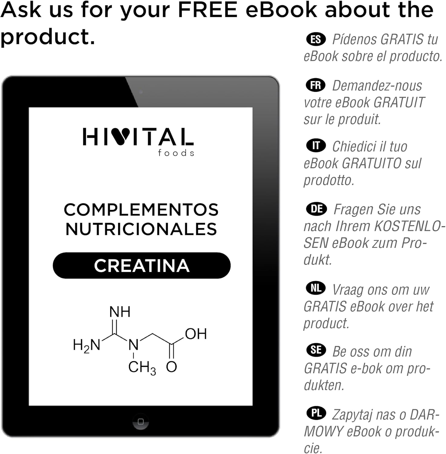 🎁 FREE EBOOK: When you buy our product, we will send you our FREE ebook (in pdf) about Creatine, its properties and all its benefits for your health.