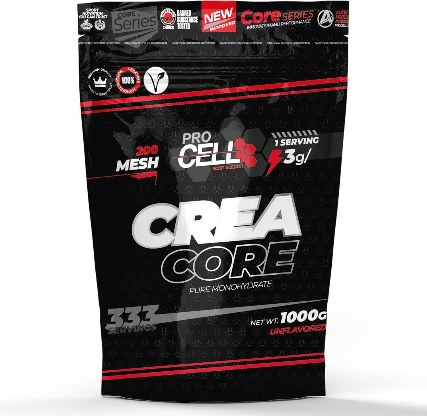 FORGET SHORT PACKAGING – 333 pure power shots in each 1kg bag of Creatine Monohydrate Months of strength without worrying about replenishing. Your faithful ally in every volume phase.