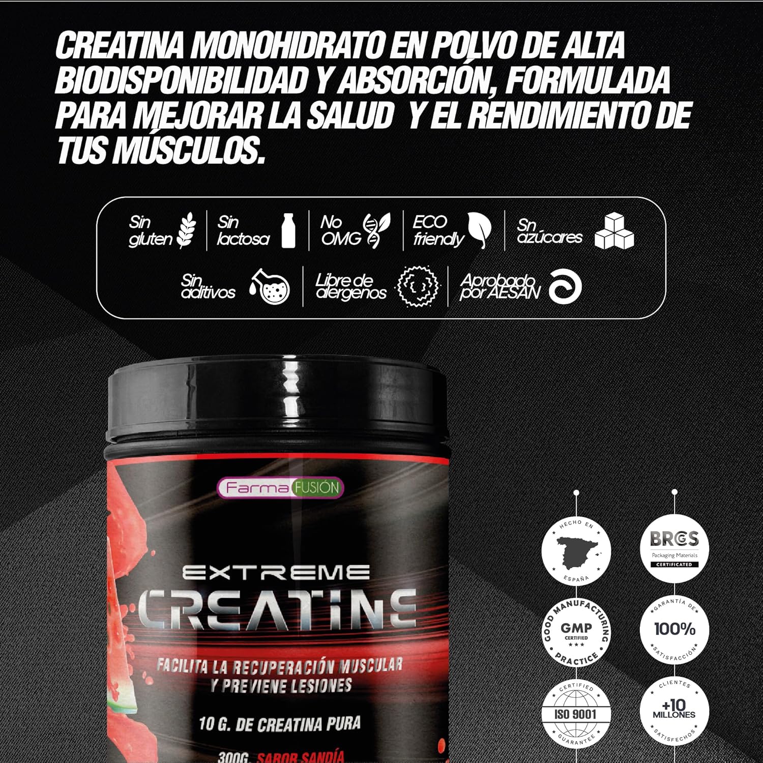 AWARD FOR BEST TASTE AND EASY DISSOLUTION – 100% Creatine X4 contains a delicious and exclusive watermelon flavor. In addition, its dissolution is easy and fast avoiding the formation of annoying lumps.