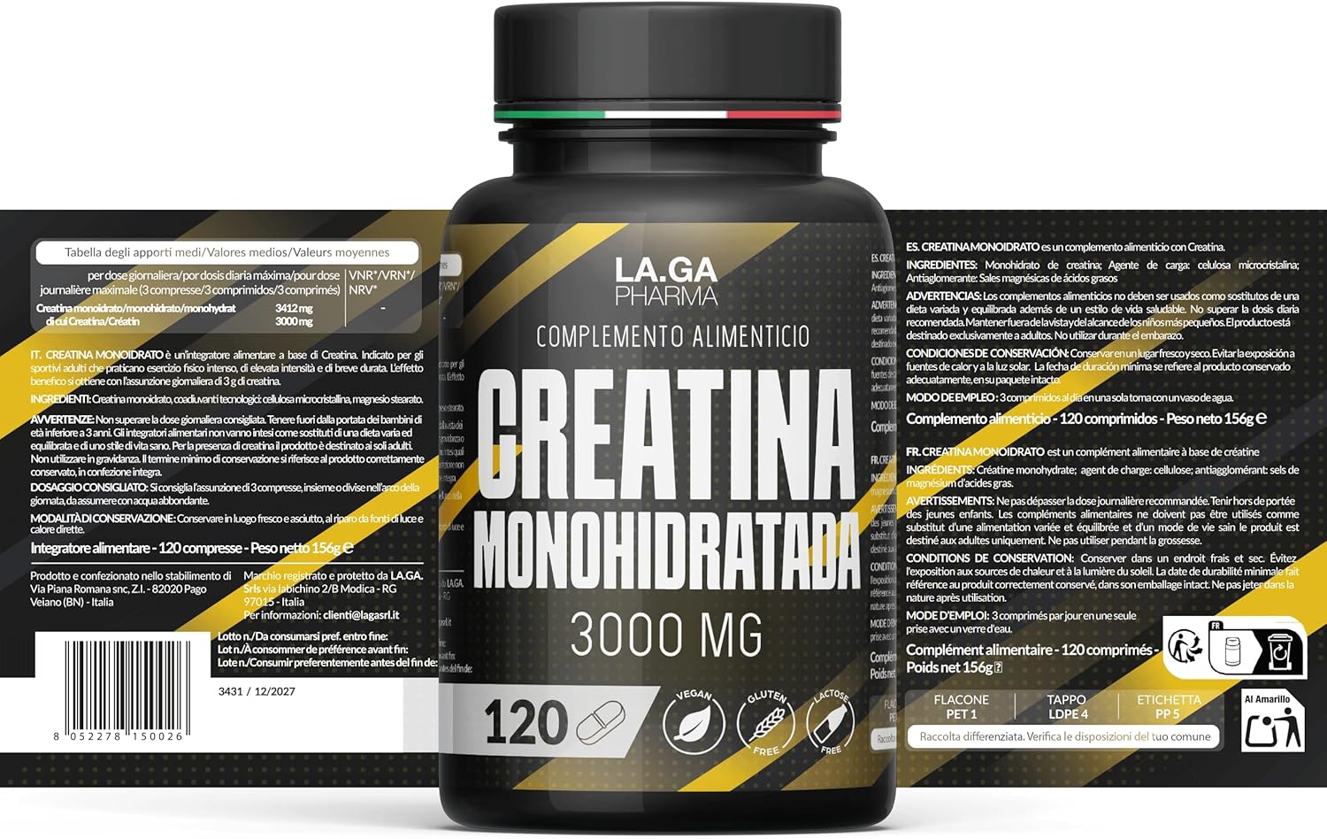 HIGH QUALITY AT THE BEST PRICE: Our creatine tablets are produced in Italy in compliance with safety and quality standards. The tablet formulation has been created to facilitate ingestion. In addition, unlike creatine powder, it leaves no residue or any flavor.
