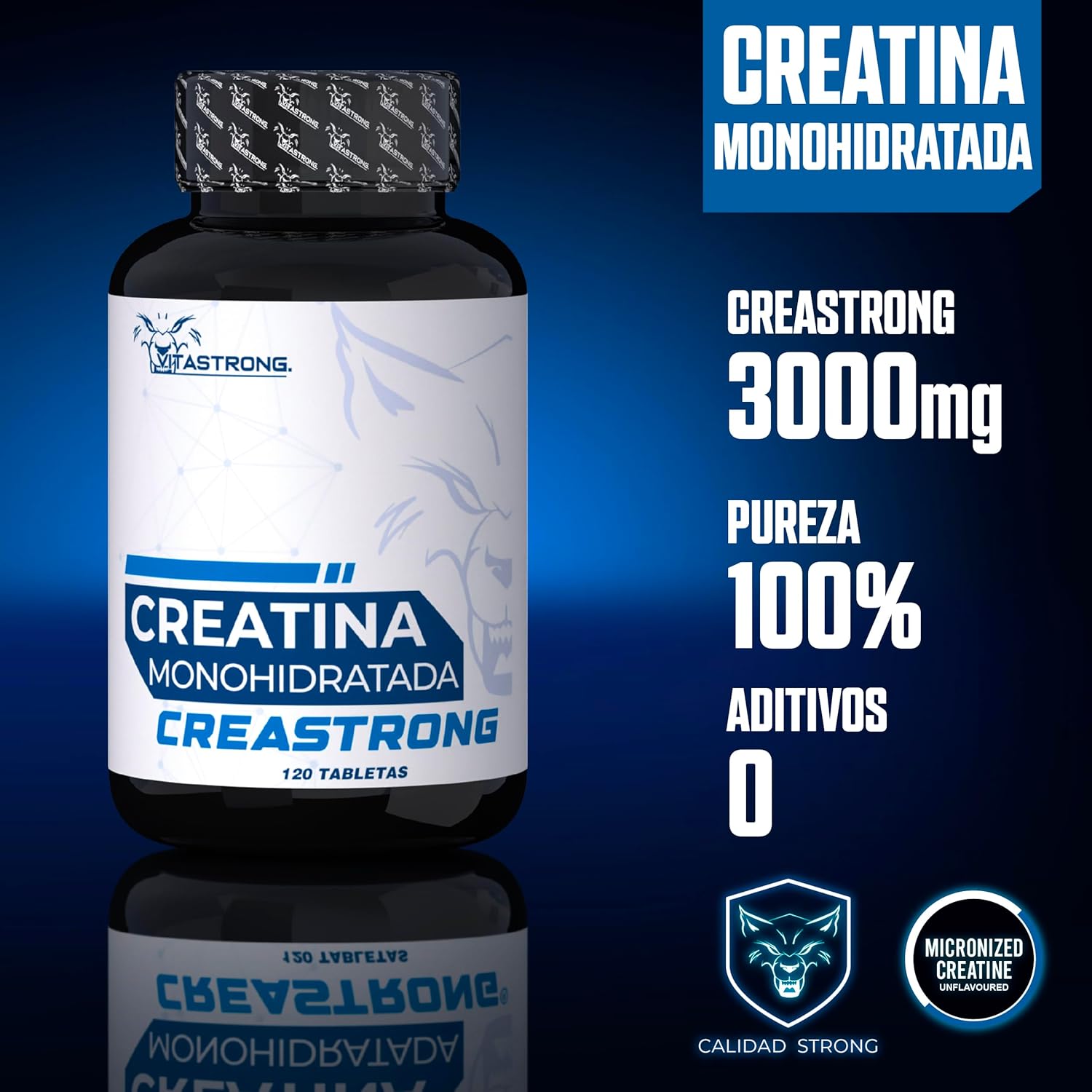 3000MG CREATINE MONOHYDRATE IN VEGAN TABLETS: We offer CreaStrong vegan monohydrate creatine monohydrate, ideal for athletes and fitness enthusiasts looking to take their performance to the next level. Our high dosage 3000mg creatine monohydrate is internationally recognized for its purity and high quality. In fact, our creatine monohydrate is not mixed with other types of creatine, allowing us to maintain the premium quality that sets us apart.