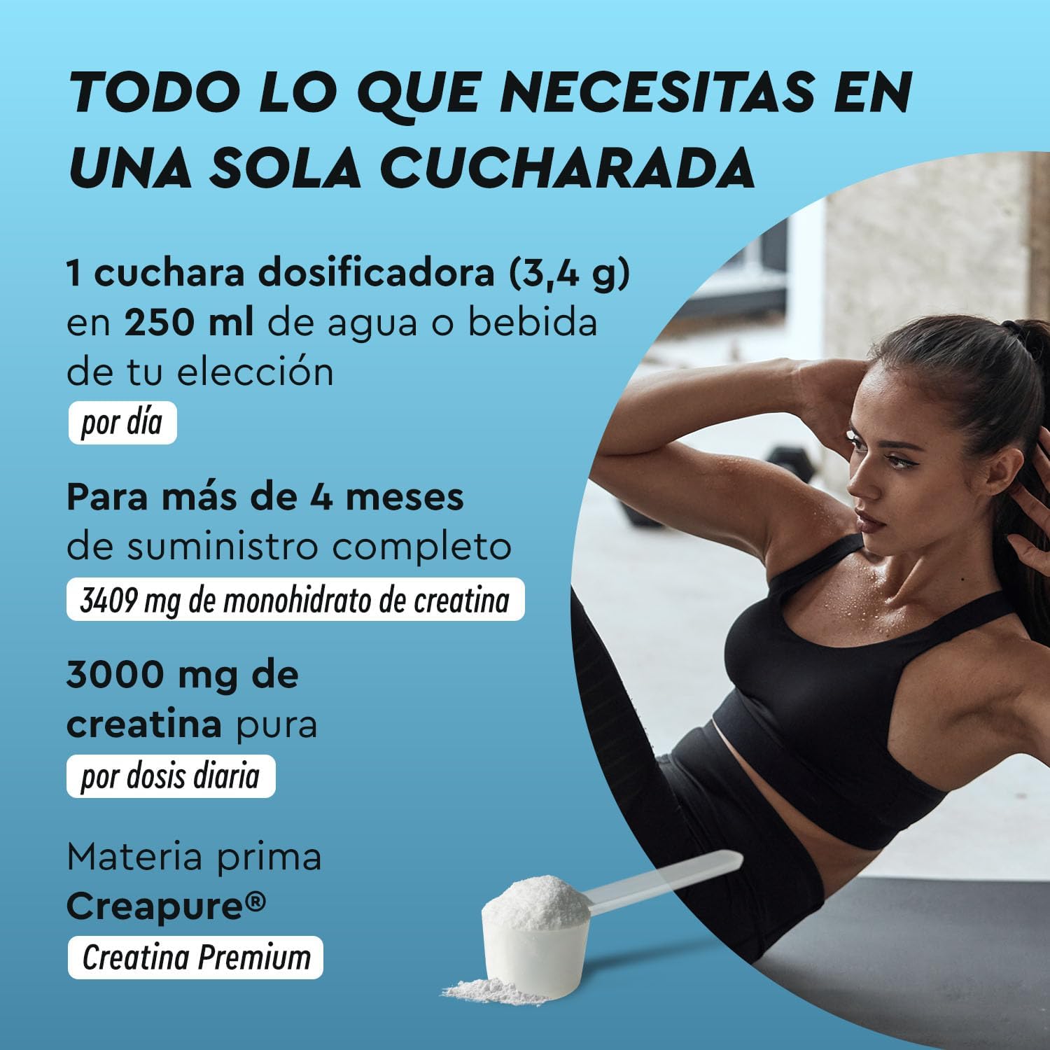 ✅ 3409 MG OF CREATINE MONOHYDRATED CREATINE CREAPURE – Our high quality pure creatine powder provides you with 3409mg of creatine monohydrate daily, of which 3000mg is pure creatine. One package (500g) contains 147 servings of Creapure Creatine. We recommend taking 1 serving daily (=1 creatine doser) which means it yields for 147 days of taking (+4 months).