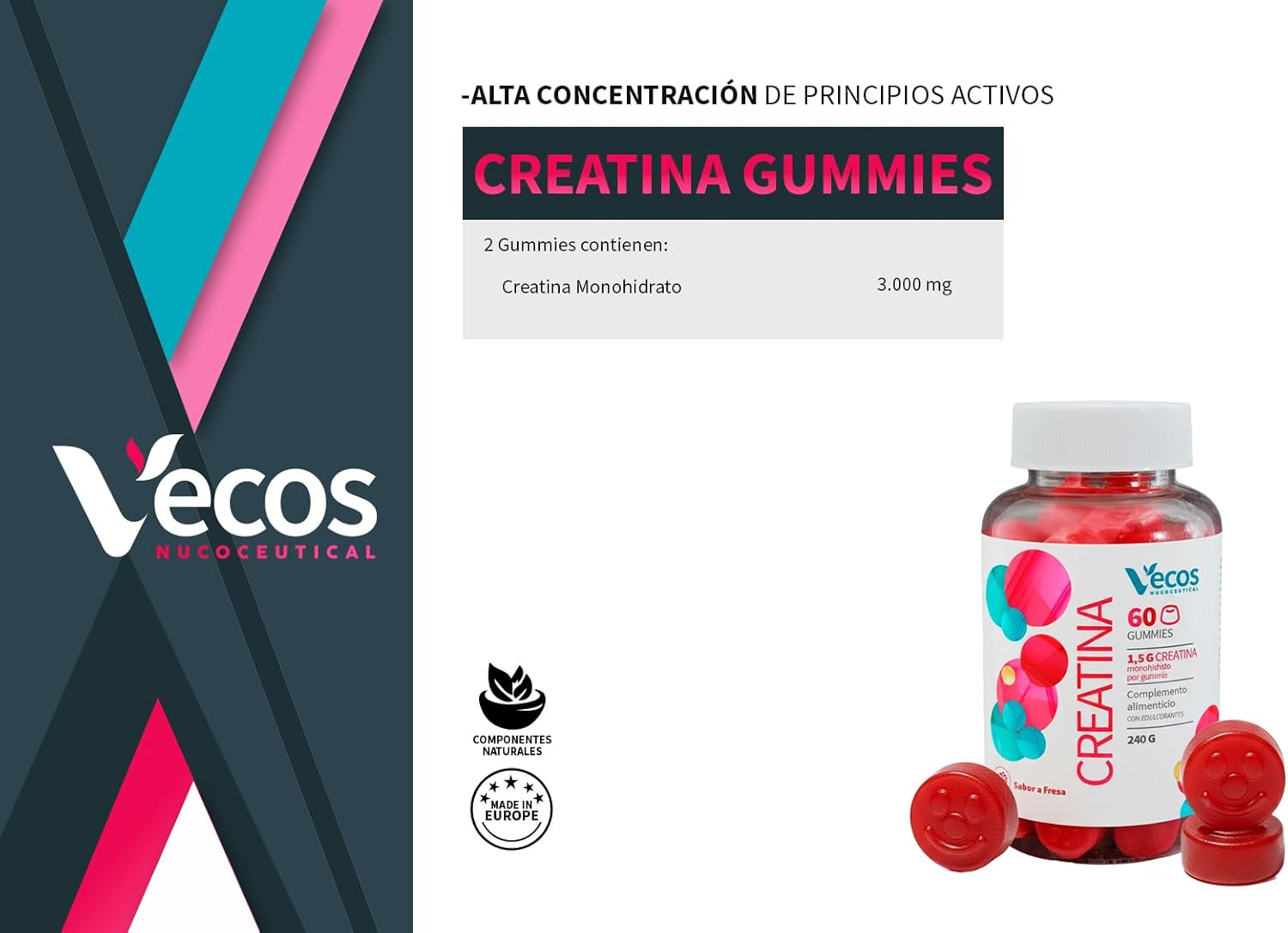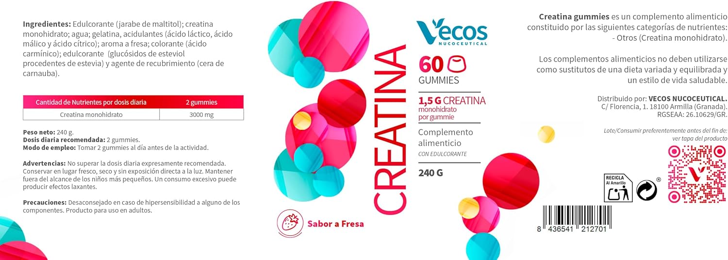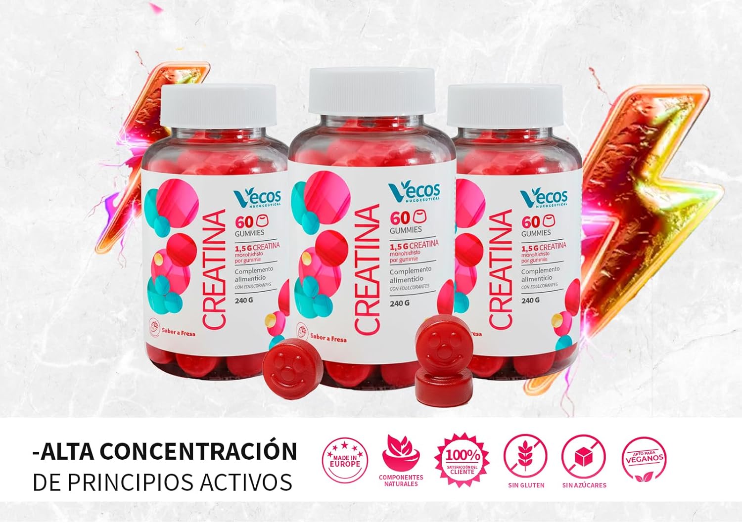 Turn supplementation into a treat with our Pure Creatine Monohydrate Gummies 3000mg (3g per dose, equivalent to two gummies). Designed for both gummy creatine seekers and creatine gummies lovers, this innovative formula combines effectiveness with convenience and a delicious tart strawberry flavor. Creatine monohydrate is scientifically backed by the European Food Safety Authority to improve performance in high-intensity exercise. If you take consistent doses, you will favor increases in strength, power and lean muscle mass. In addition, it helps in recovery and decreased fatigue. Forget boring powders or capsules – our creatine gummies eliminate the need to measure or mix. Just chew and enjoy. They are perfect to take to the gym, in the backpack or for those who train in a hurry The gummy format makes them ideal for those looking for a tasty alternative to creatine powder. The formula is completely sugar-free, gluten-free and subjected to third-party checks to ensure purity. It is manufactured under GMP and HACCP standards, with selected ingredients and transparent approach. If you are looking for quality “creatine for women” or “creatine gummies,” this is your choice without sacrificing rigor. Many powdered products cause bad taste, lumps or missed doses. Other gummies offer low doses or intense artificial flavors. We focus on the opposite: high concentration (1.5 grams per gummie), balanced taste and pleasant texture, without compromising effectiveness or integrity. Take 2 gummies a day, preferably at the same time (for example, before training or with your meal), to reach 3 grams of creatine daily. It is recommended to maintain good hydration. For optimal results, be consistent even on rest days.