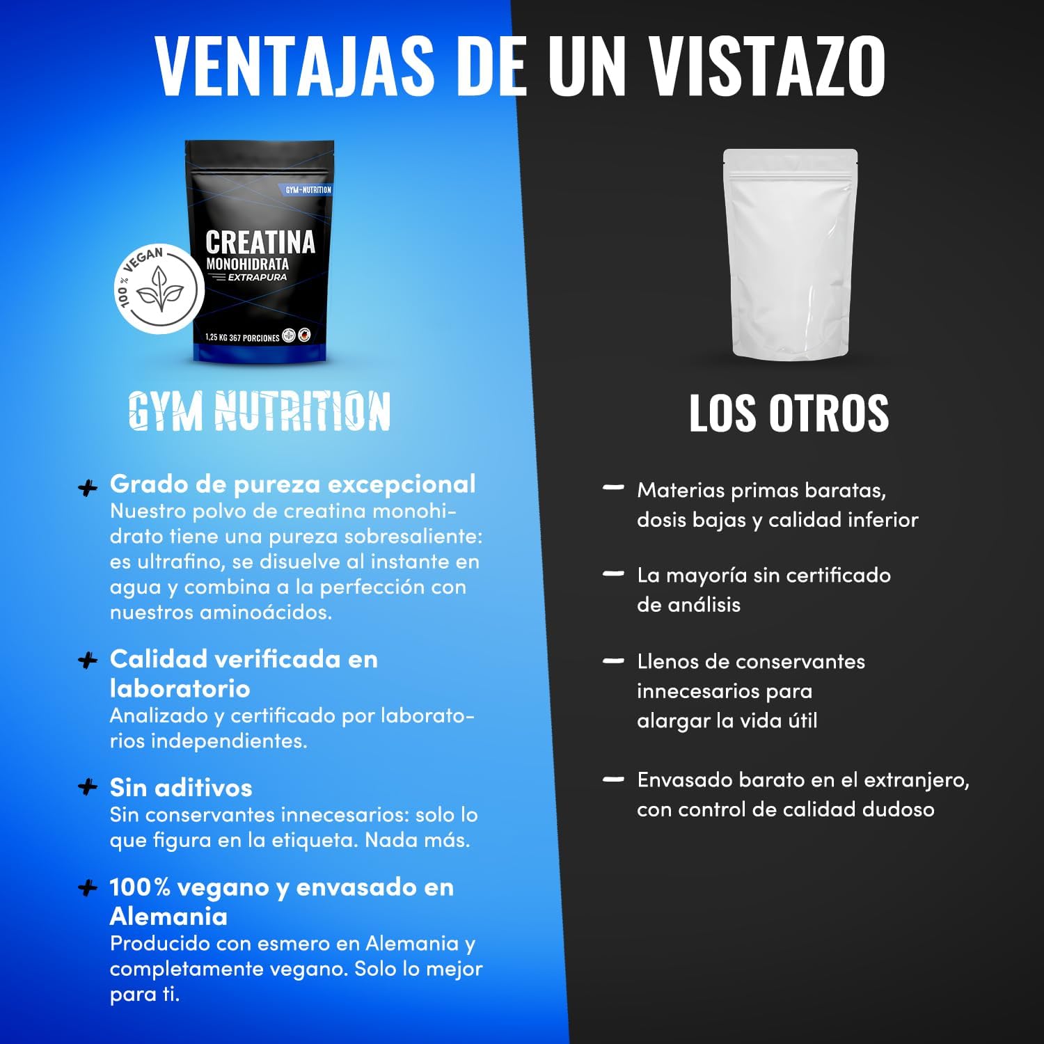 High-quality creatine in XXL bag: our creatine monohydrate powder has a particularly high purity. Gym Nutrition creatine powder is very fine and can be perfectly dissolved in water.