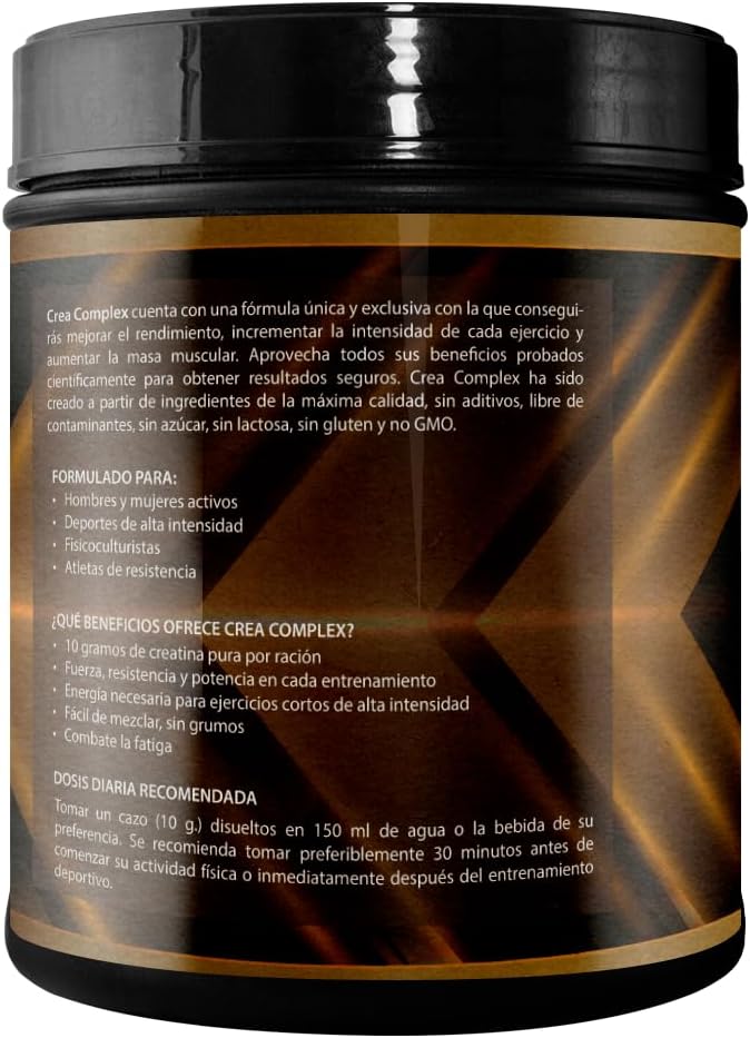 Crea Complex has an exclusively developed formula with which you will be able to improve performance, increase the intensity of each exercise and increase muscle mass. Take advantage of all its scientifically proven benefits for safe, proven results with scientific evidence. Crea Complex has been created from the highest quality ingredients, no additives, pollutant-free, sugar-free, lactose-free, gluten-free and non-GMO.