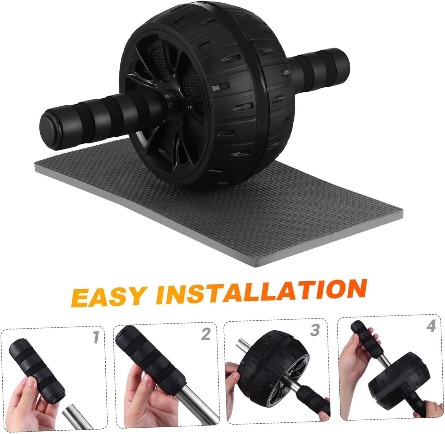 – Mango antideslizante: el mango del rodillo abdominal está diseñado con textura antideslizante, lo que garantiza un agarre seguro y firme el del equipo auxiliar de entrenamiento abdominal.