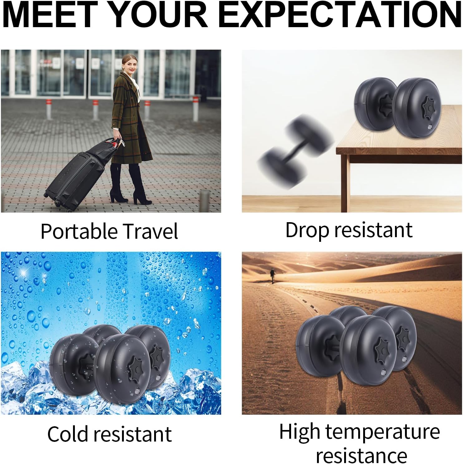 💪 【Featured Materials】 The travel dumbbells are made of thickened PVC material which is not easy to break, stands out well in excellent airtight feature, does not leak water and is very durable. And since it is soft, it will not damage the floor when you drop it.