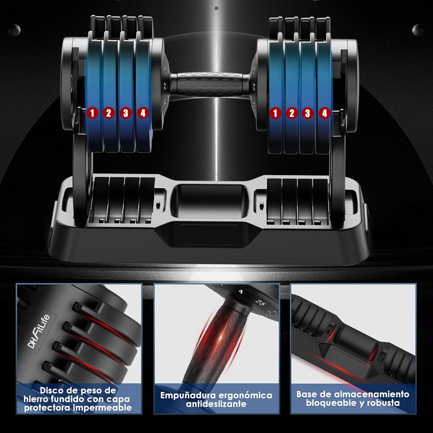 LONG-LASTING COMFORT FOR EXTENDED WORKOUTS – Designed for your home workouts, these adjustable dumbbells with ergonomic, non-slip handle protect your hands while offering comfort and control even in extended sessions. The cast iron discs feature a waterproof coating that protects them from sweat and moisture, contributing to greater durability.