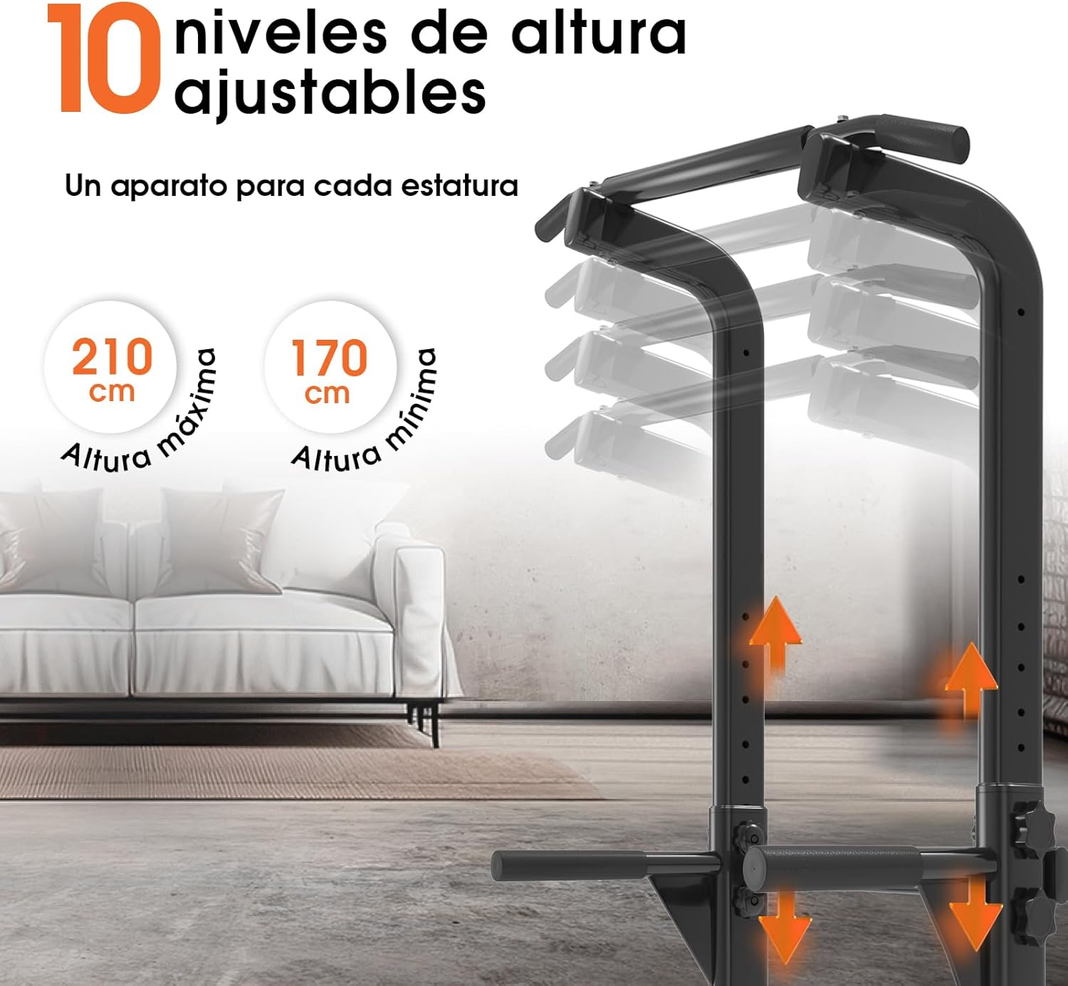 MAXIMUM FLEXIBILITY AND FREEDOM: Thanks to its 10 adjustable height levels, the strength tower adapts to any body type and training goal. The 4 adjustment knobs ensure greater stability during your exercise routine.
