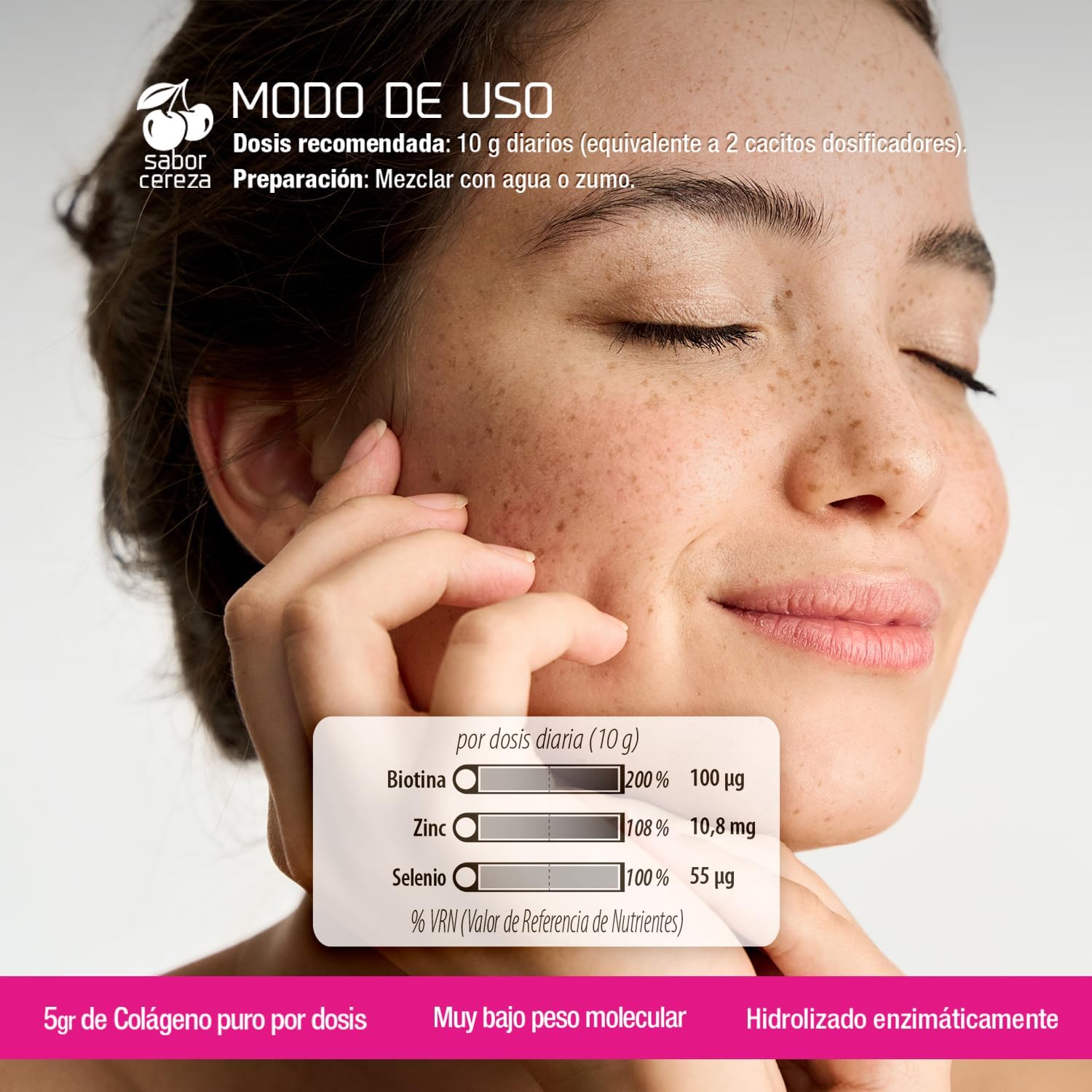 HOW TO USE: Take 10 g (2 measuring scoops) mixed with water or juice. We recommend consuming the product for at least 3 months. Per daily dose, 0.1 mg of Biotin is obtained
