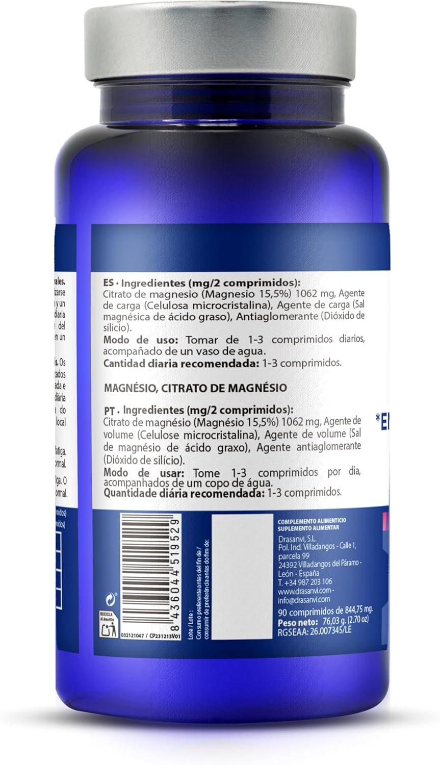 DRASANVI MAGNESIUM CITRATE – Helps to Reduce Tiredness and Fatigue – VEGAN – GLUTEN FREE – 90 Tablets