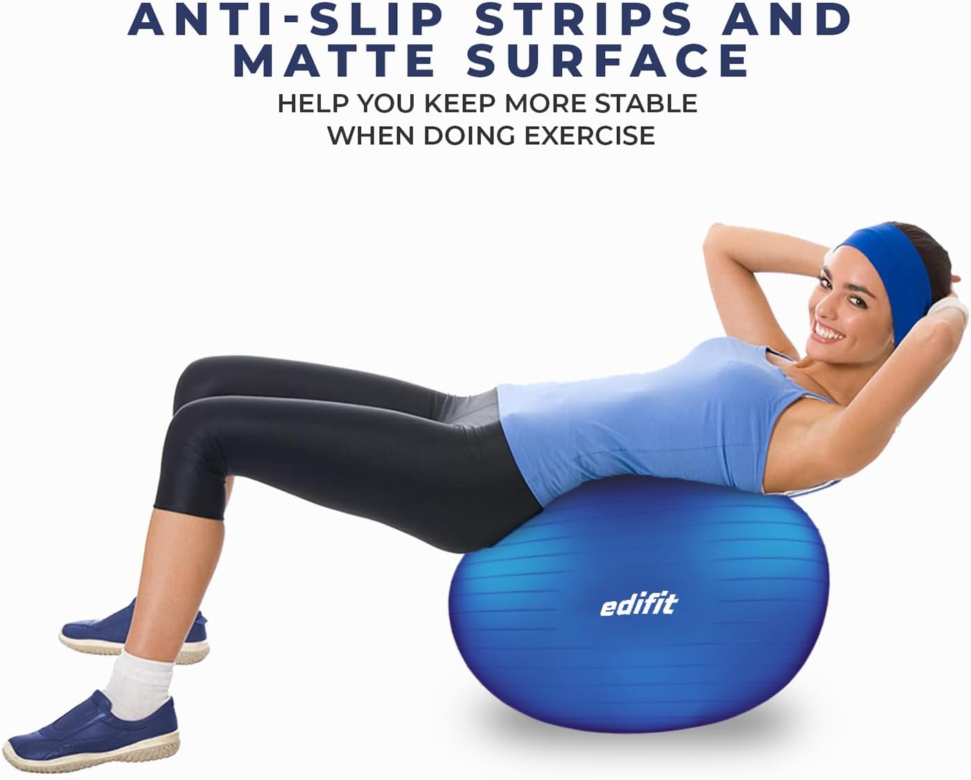 MULTIPLE SIZES: Our Edifit ball is available in three sizes (55,65,75)cm, which make it adapt to any person and need, providing a very large variety of alternatives.