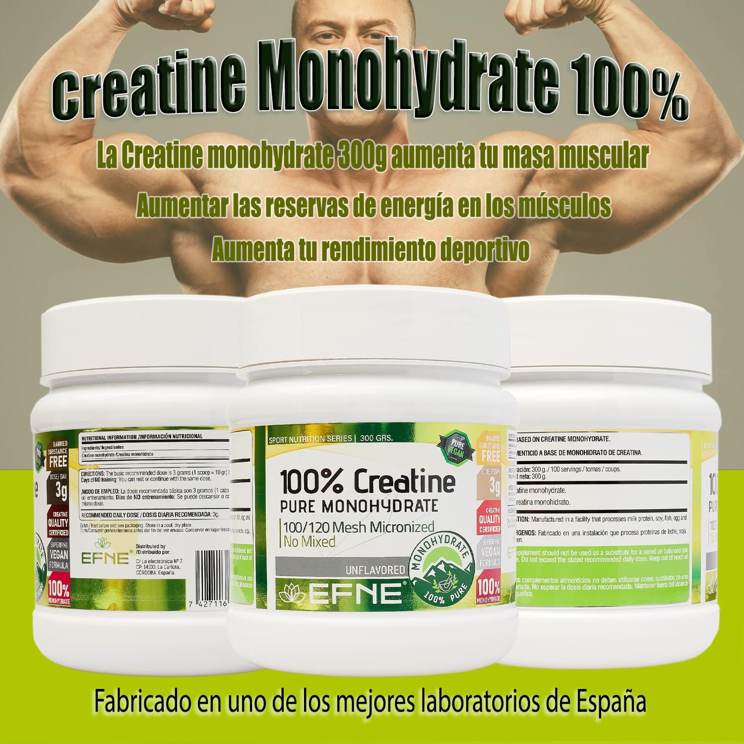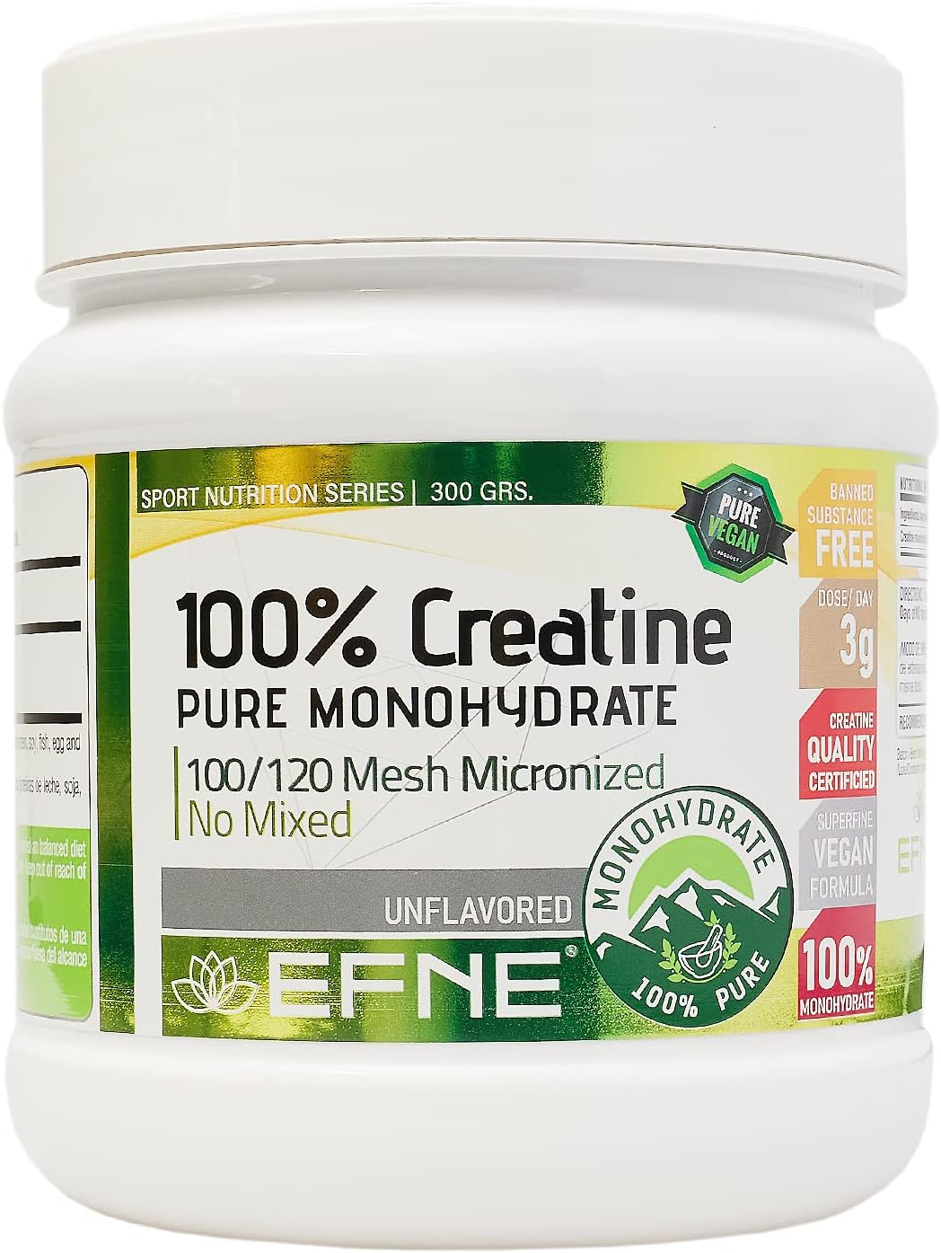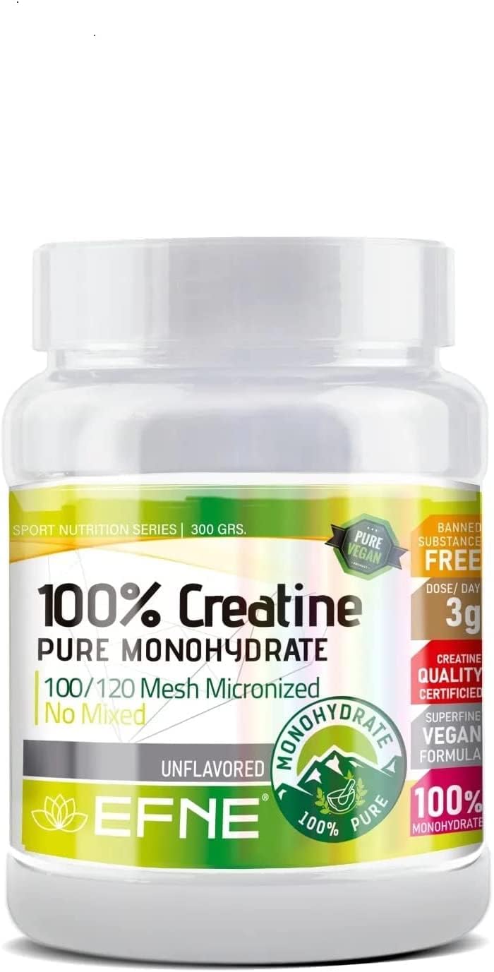 EFNE | Creatine 100% Monohydrate 100/120 Mesh Micronized | 300g Powder | 100% Purity | Increases Strength | Increases Strength | Neutral Taste | Vegan | Made without Blends