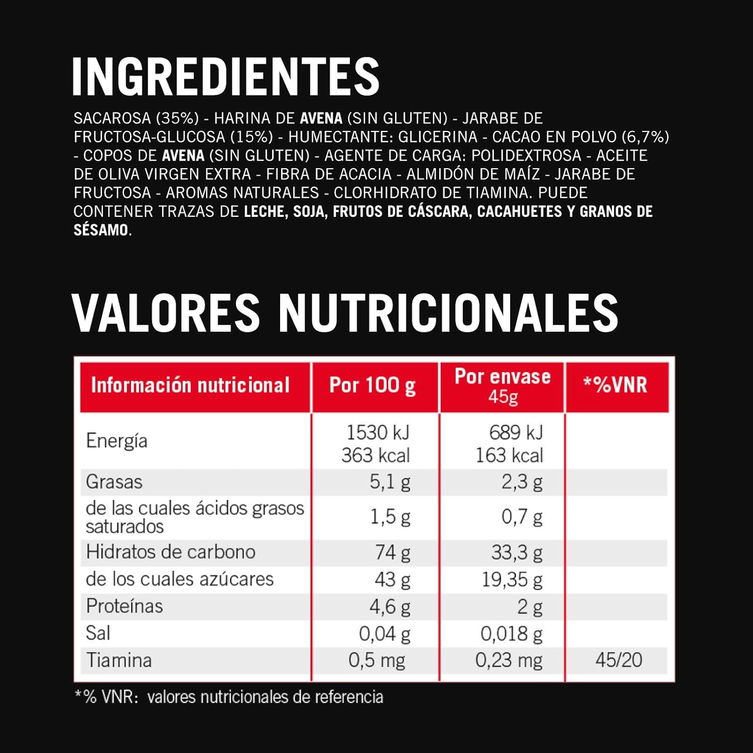 Enervit, Carbo Bar C2:1PRO Brownie, Barrita de 45g, Barrita de Avena con Glucosa, Fructosa y Vitamina B1, con 30g de Carbohidratos, Sin Gluten, Sabor Brownie