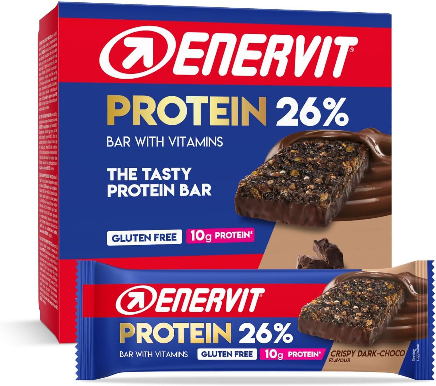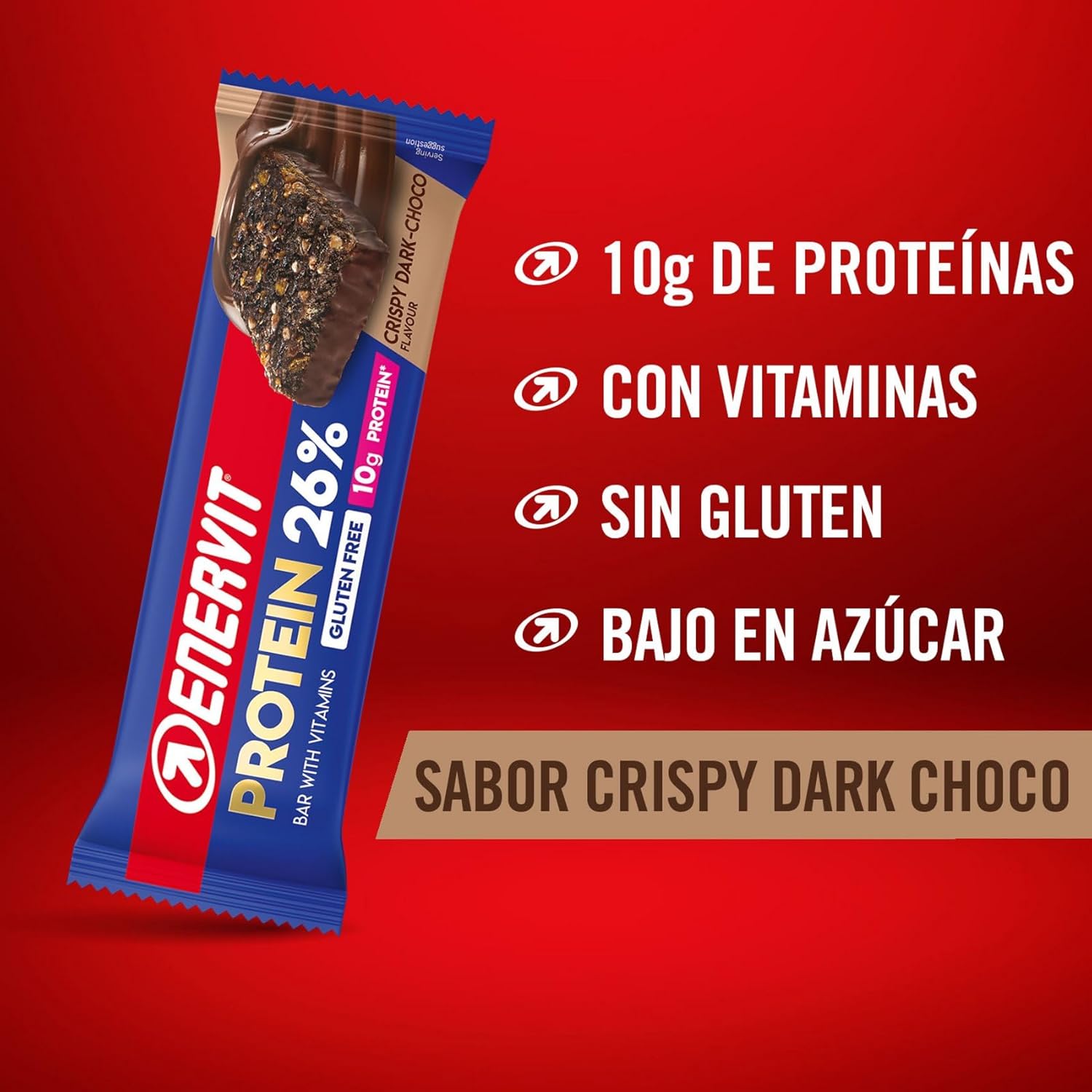 Enervit, Crispy Dark Choco Protein Bar, 26% Protein Bar, 10g Protein, with Vitamins D and B6, for Recovery After Sport, Dark Chocolate Flavor, Gluten Free, 12 Bars of 40g
