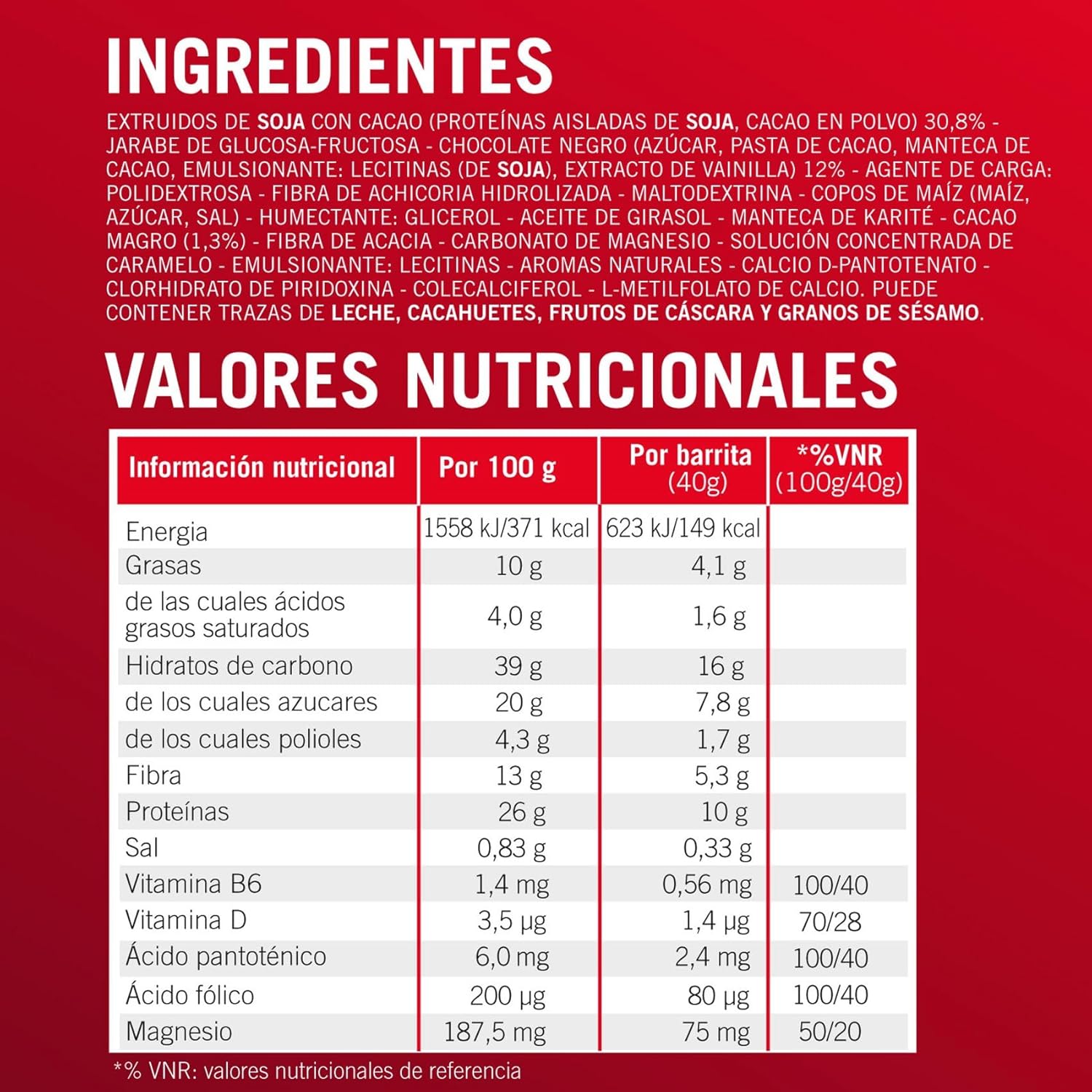 26% CRISPY DARK CHOCO PROTEIN BAR: With 10g of soy protein and a blend of vitamins and minerals, dark chocolate crunchy filling, gluten free