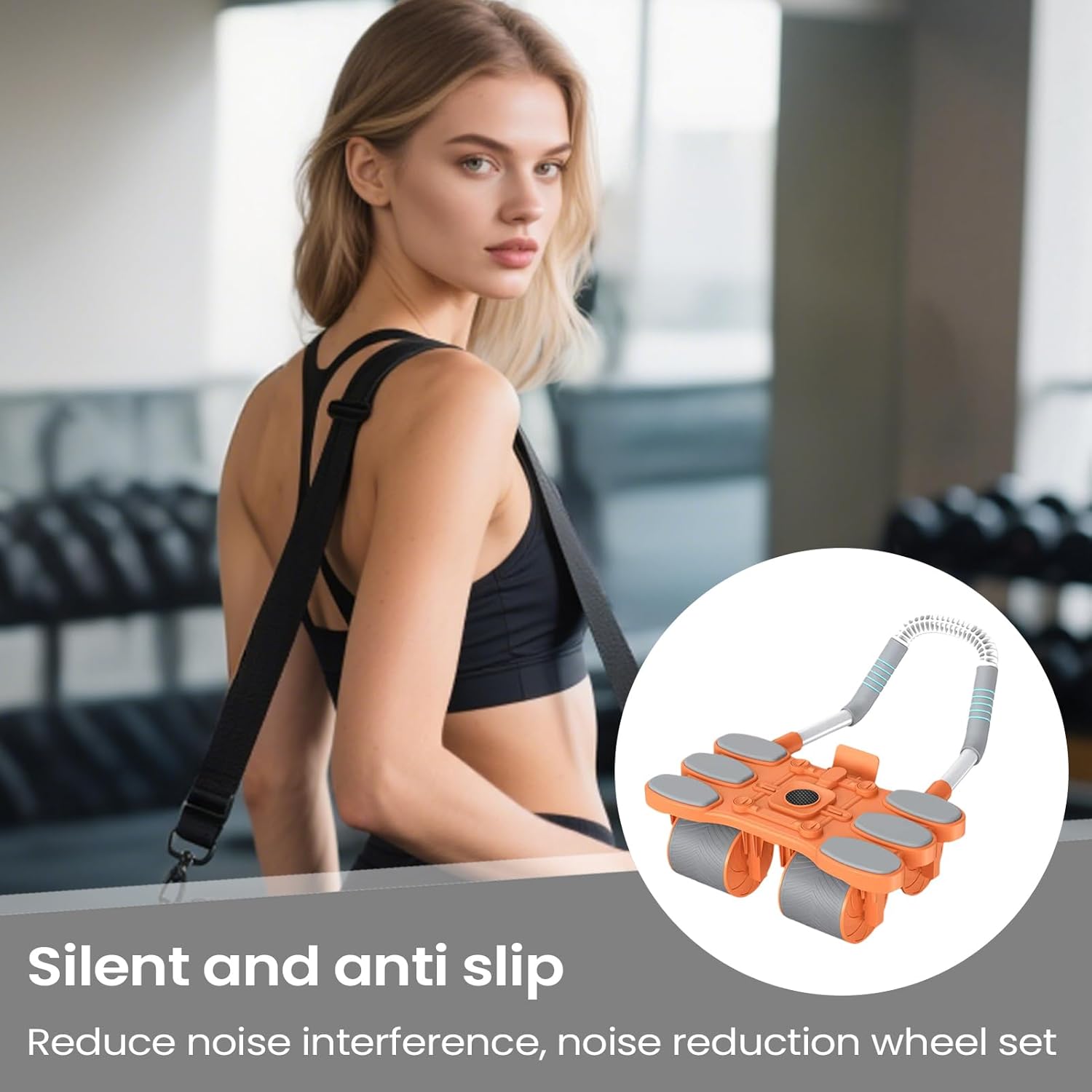 Erconsso Rodillo de abdominales, rodillo de entrenamiento de cuatro ruedas, rebote automático, equipo de entrenamiento de fuerza silencioso para atletas, mujeres, hombres, adultos, entusiastas del
