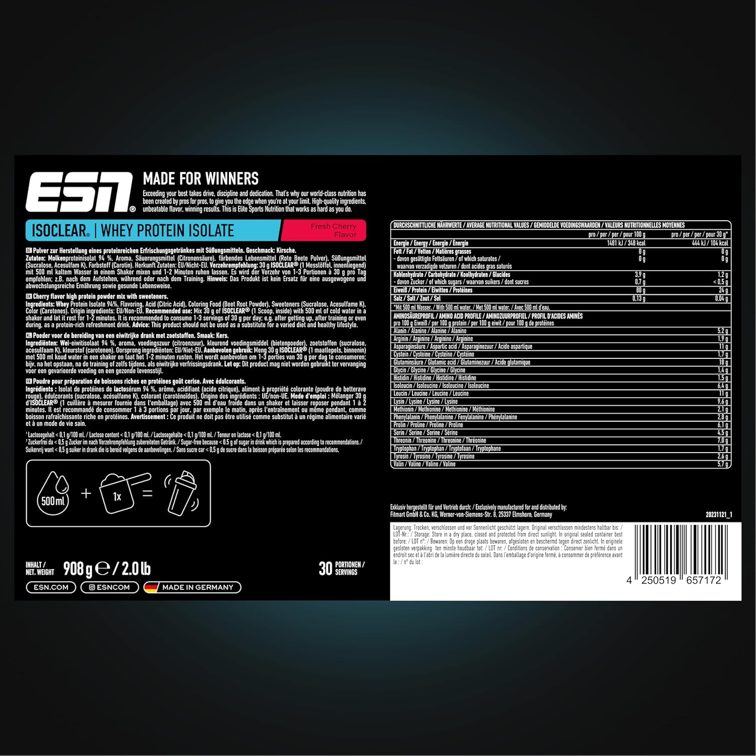 INNOVATION: The patented Isoclear Whey Isolate is very easy to digest, is produced naturally gently, and is therefore intact and biologically highly available. Its excellent amino acid profile, with 48.9% EAA and 22.7% BCAAs, is extraordinary.