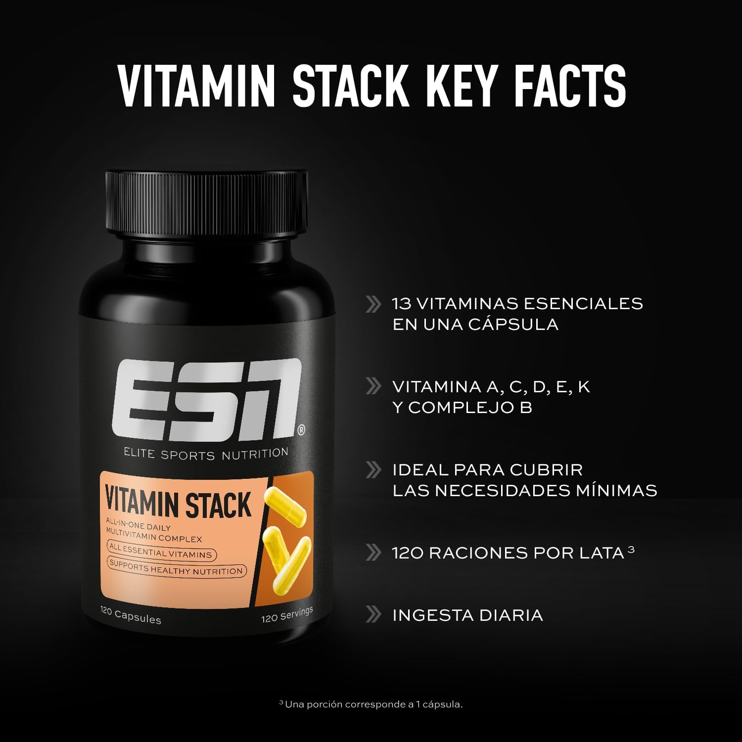 HIGH DOSAGE: ESN Vitamin Stack is a high quality multivitamin supplement with 13 essential vitamins for your body – with Vitamin A, C, D, E, K and B Complex