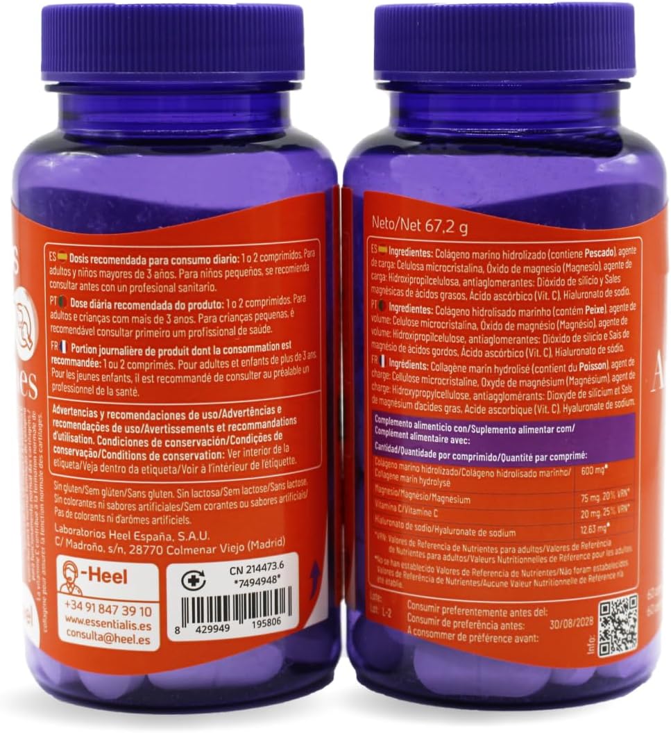 Essentialis Joints is a food supplement with marine hydrolyzed collagen, hyaluronic acid, vitamin C and magnesium that helps improve joint, bone and muscle health. Gluten and lactose free. No artificial colors or flavors HEEL: We are an international pharmaceutical company specializing in natural therapeutic solutions since 1936. We are convinced that the future belongs to therapeutic solutions that support the body’s ability to recover and improve quality of life. With our medical and scientific expertise, we are committed to providing patients worldwide with effective and well-tolerated therapeutic solutions. Taking care of maintaining your health so that you live the future is our goal.