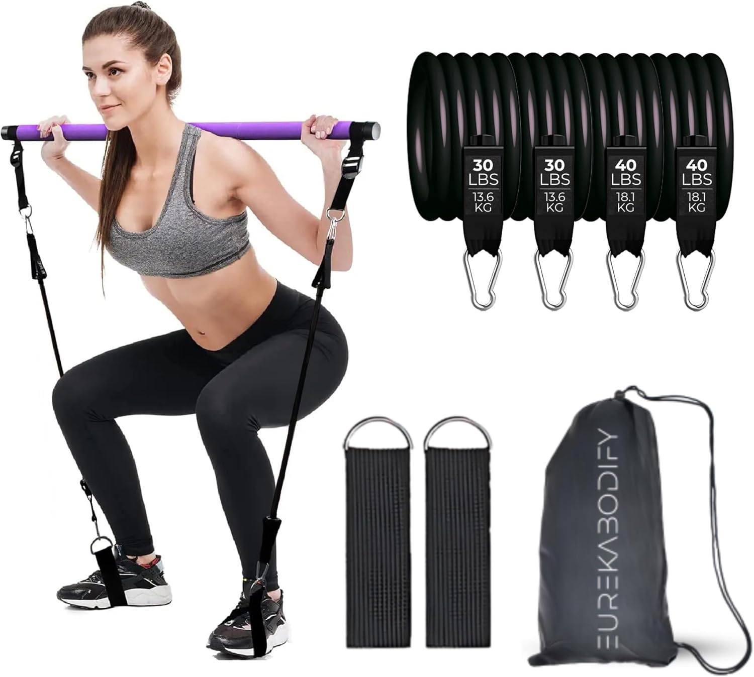 Detachable and portable design: Pilates bar in 3 sections, easy to carry and store with bag included. Perfect for home gym exercise or travel.