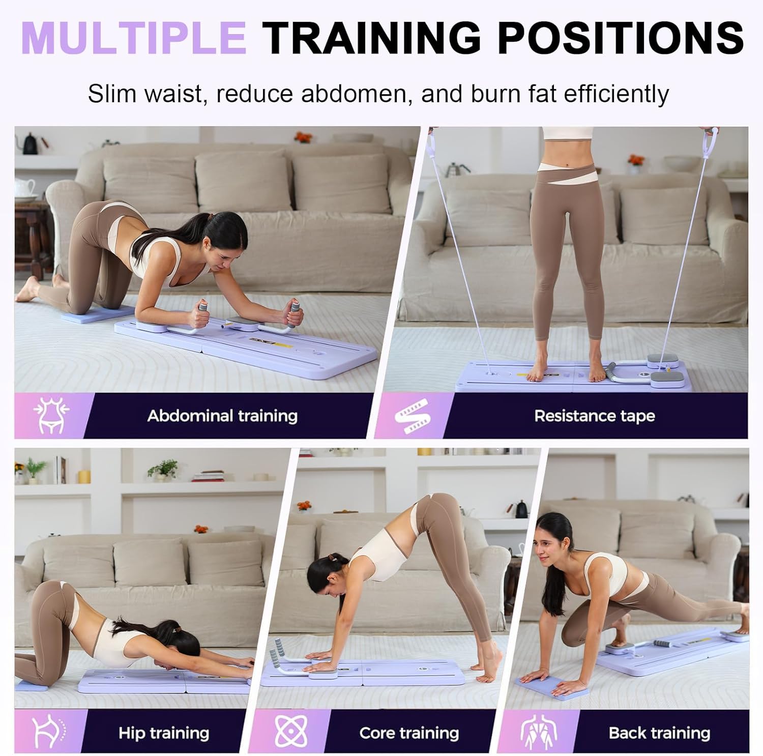 【Innovative Design】Foldable design can make this ab exercise board easier to store and carry. Pilates reformer comes with a smart timer to make workouts more fun