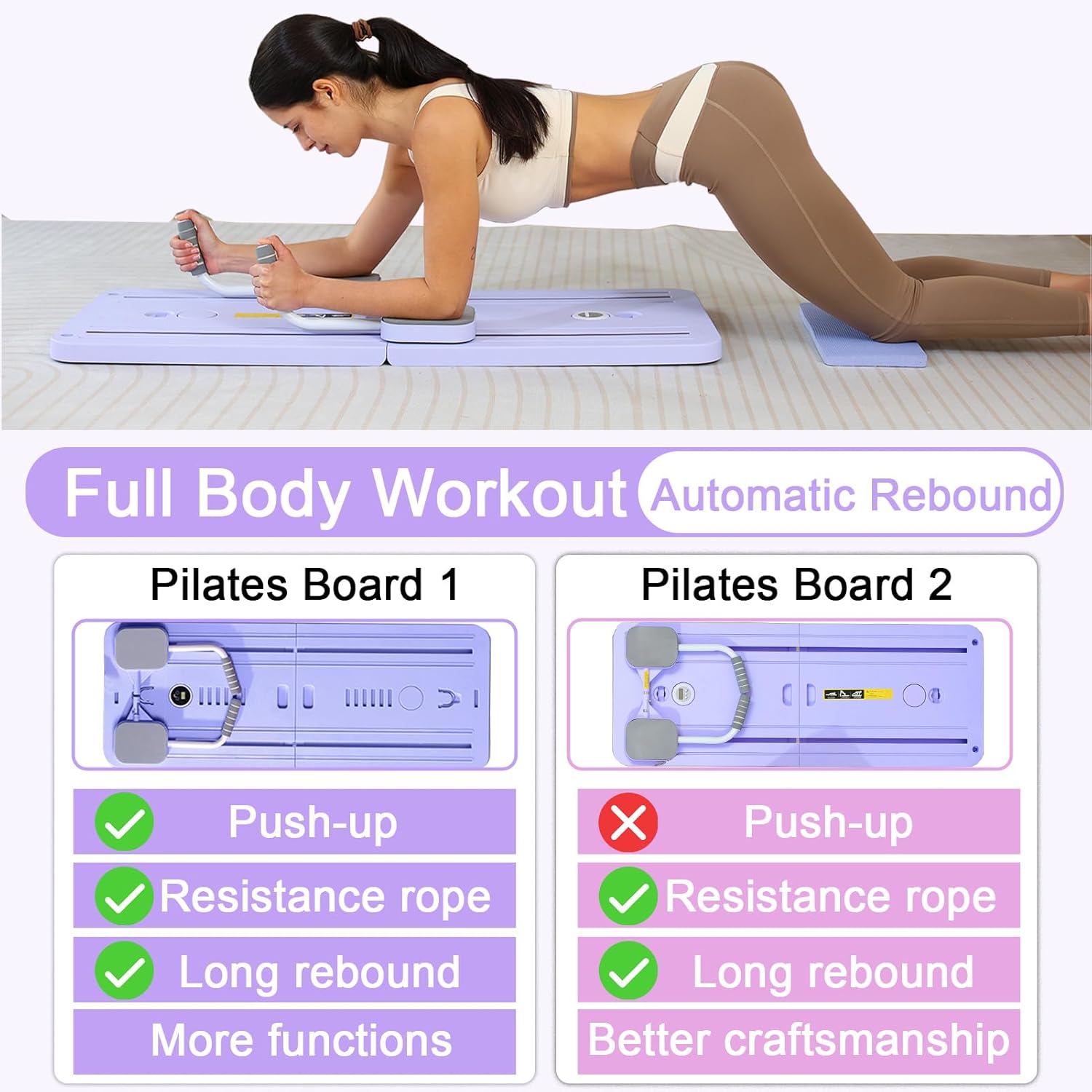 Compact Pilates Reformer: New Pilates board with improved functionality. Integrate Pilates and full-body workouts into one. Complete your full body workout program with just one machine. Save yourself the hassle of choosing an appliance