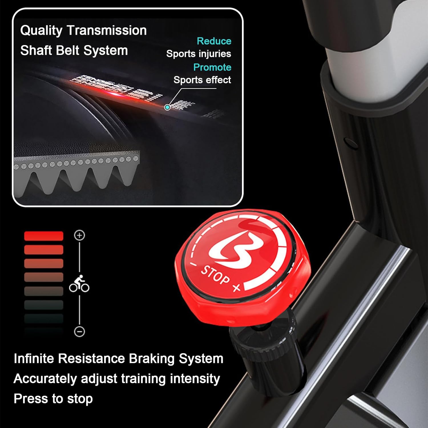 INFINITE RESISTANCE BRAKE SYSTEM – With the infinite resistance brake system, you can precisely adjust the intensity of the workout to reach your fitness goals. Just press to stop the bike and you have full control of your workout.
