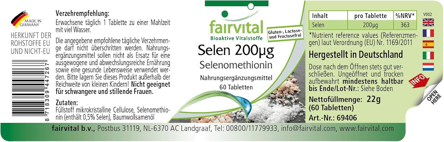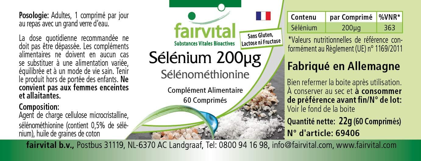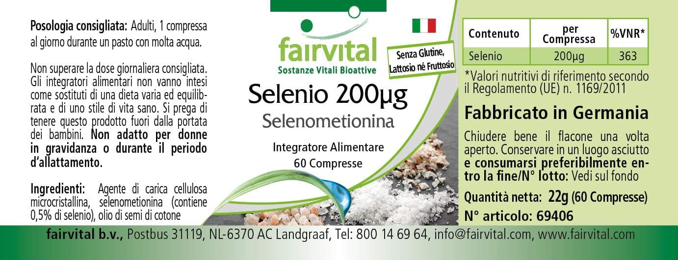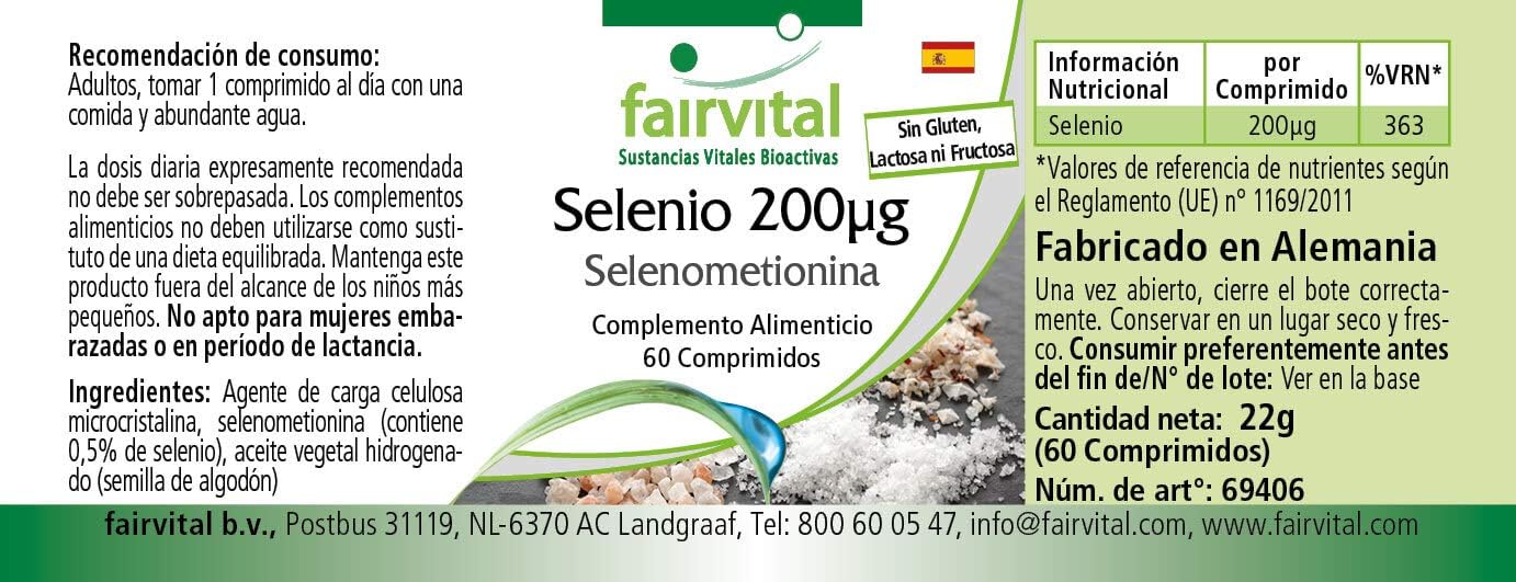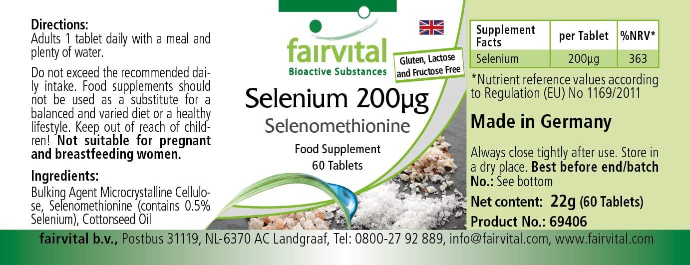 ✔ FAIRVITAL GERMAN QUALITY: Selenium 200mcg Selenium Methionine – for 2 months – High Dosage – 60 tablets