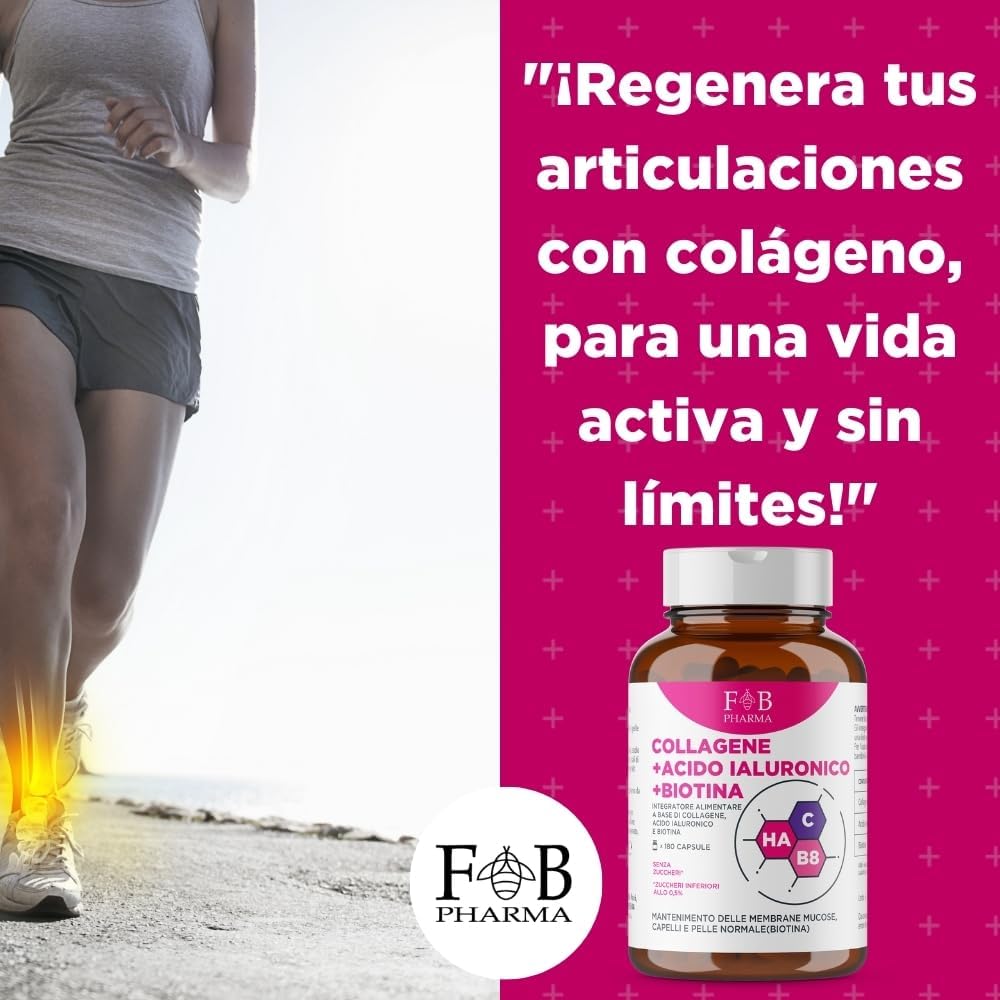 Collagen Supplement + Hyaluronic Acid + Biotin Complete Formula designed for Joints and Bones, Skin Beauty, Cartilage, and Hair Support from FB PHARMA, a complete formula that contributes to strengthening joints, bones and cartilage, as well as being useful for those who want to improve the appearance of their skin and strengthen the scalp. FORTEBRACCIO PHARMA guarantees quality and professionalism, with formulas developed in Italy and high quality ingredients, NON-GMO, NO ADDED SUGARS and GLUTEN FREE.