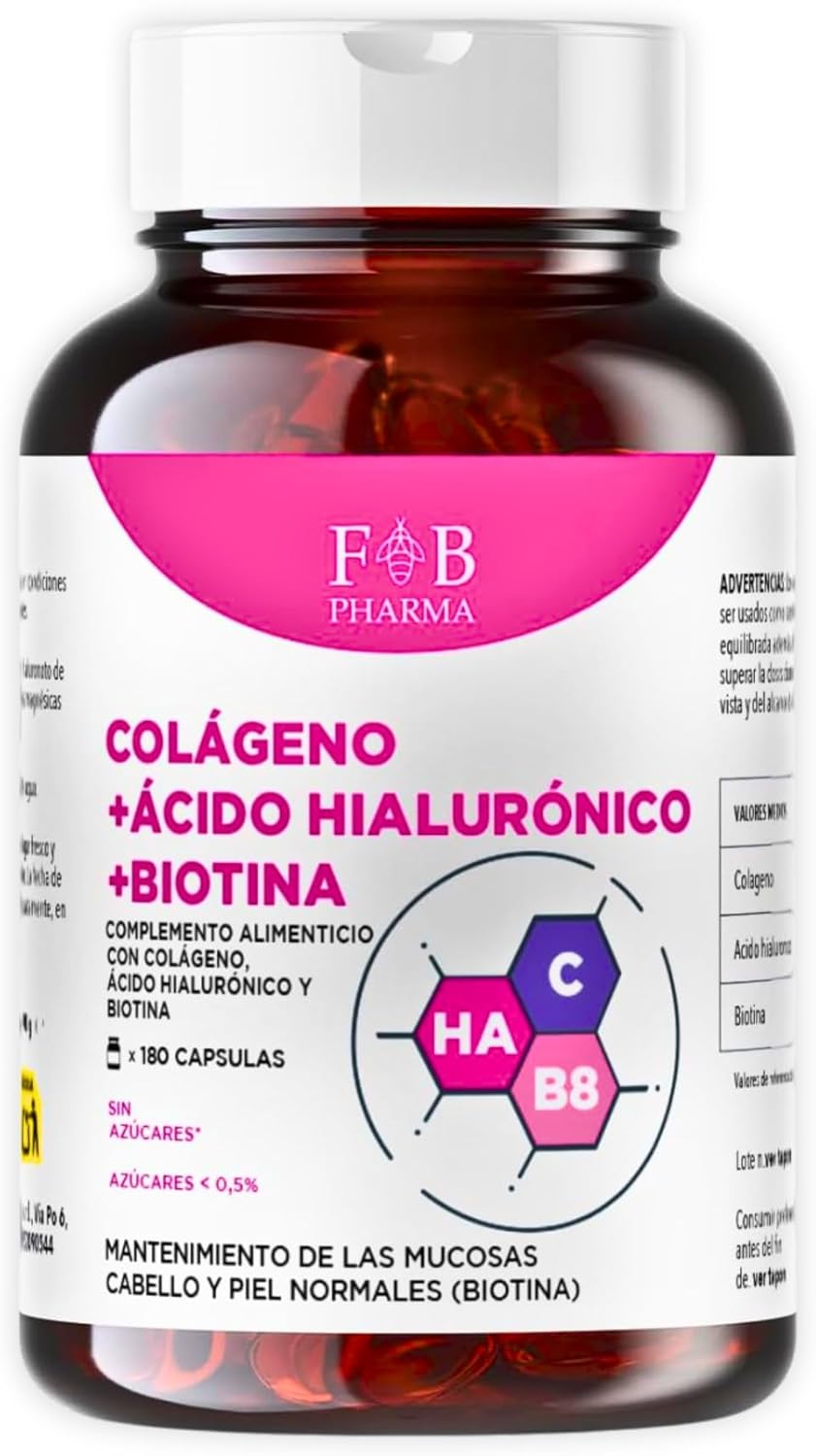 FB Pharma – Collagen with Hyaluronic Acid, Biotin for Hair, Skin and Nails – 180 Capsules – Formula Developed in Italy