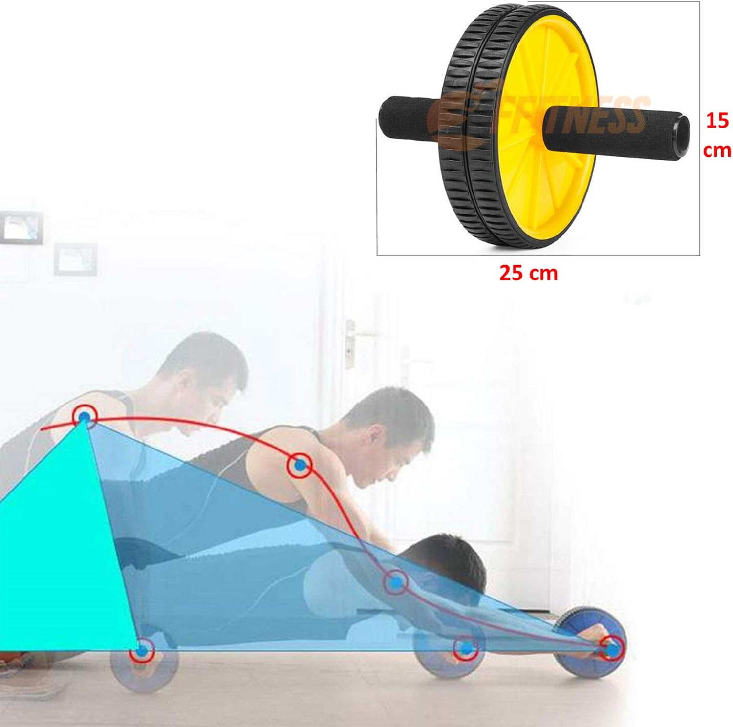 FFitness Two-Wheeled Power Wheel with Mat, Wheels with Handles for Abdomen, Unisex, Adult, Yellow, Single