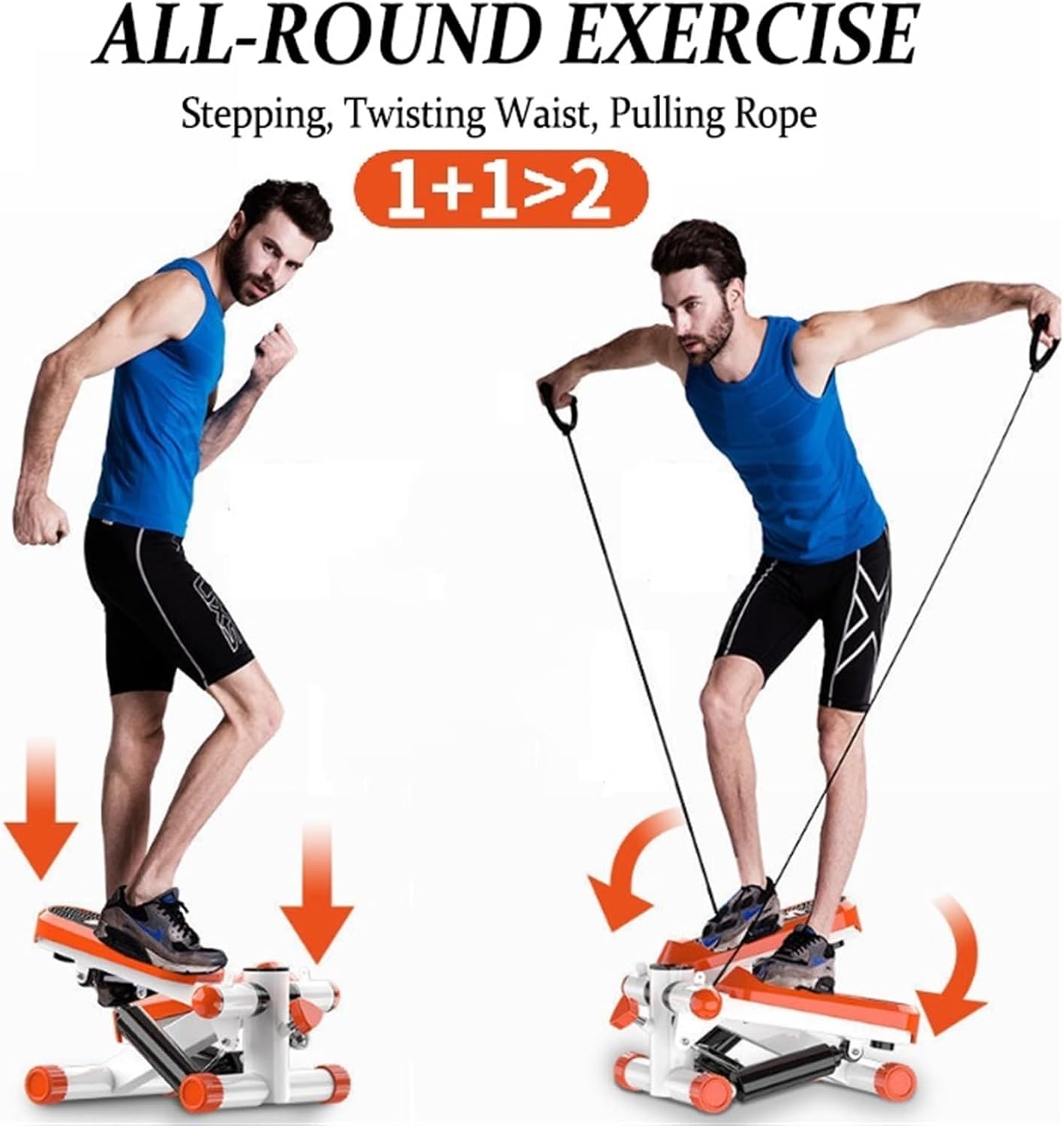 【Mini Stepper Exercise Machine】This mini stepper provides a full body workout experience with three-in-one stepping exercises, waist twisting and rope pulling. Use the knob to adjust the height and resistance of the stepper to increase the intensity of the workout and achieve better exercise results.