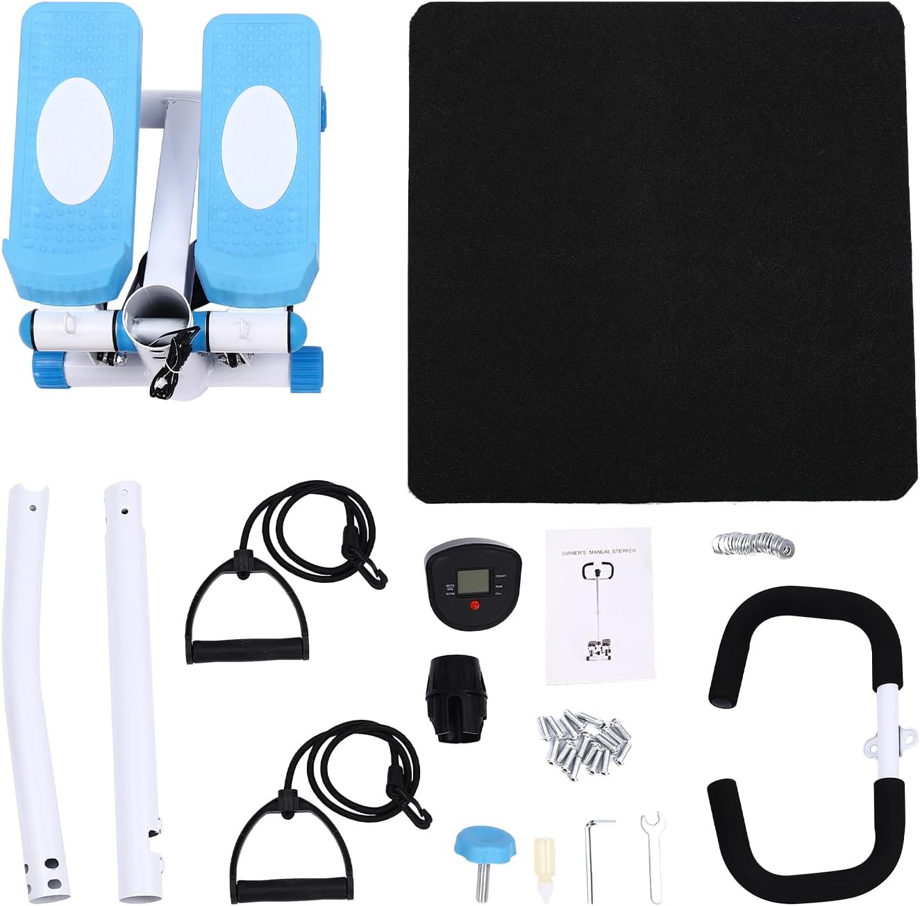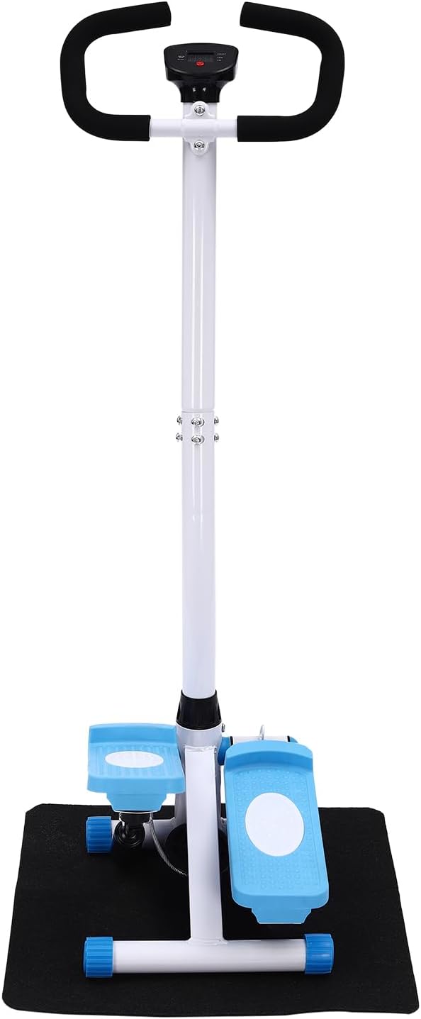 Fitness Mini Stepper Blue + White Fitness Stepper Steel Stepper Exercise Stepper Machine with Resistance Bands and LCD Monitor, 29 x 39 x 110 cm Portable Stepper Ladder for Training