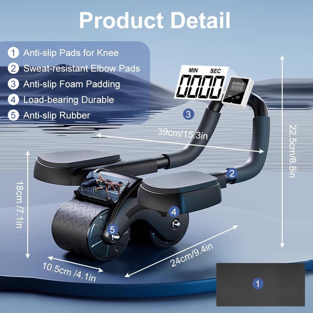 【Auto Rebound Technology】Our ab wheel adopts automatic rebound technology, which slides easily and reduces wheel wobble. This innovative feature helps control your movements and protects you from injury during exercise. Especially for beginners.