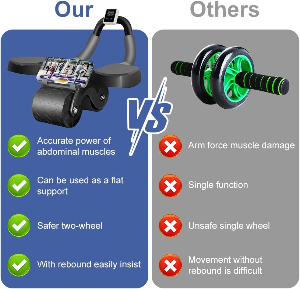 – Our ab roller is more suitable for beginners. Ergonomic handles and elbow support plates maximize arm muscles while remaining comfortable and stable.