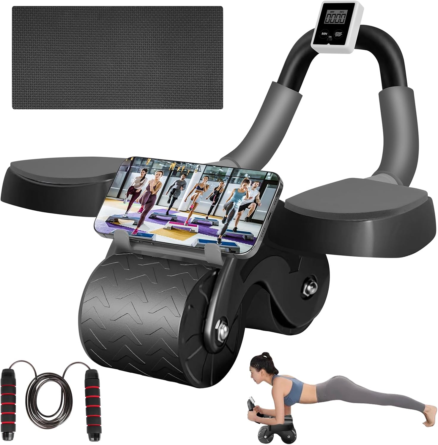 Flintronic Ab Roller Wheel, Abdominal Roller with Timer and Knee Pad, with Support for the Elbow Abs for Home Gym Tools Multifunction (Black)