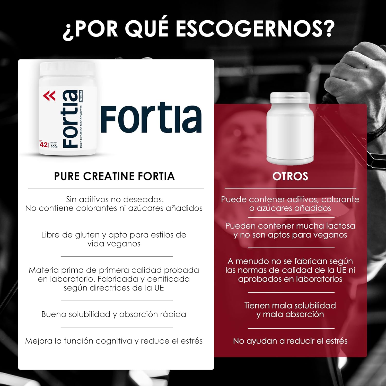 It is a scientifically based product to ensure maximum effectiveness. FORTIA offers one of the purest and most reliable monohydrate creatines on the market.