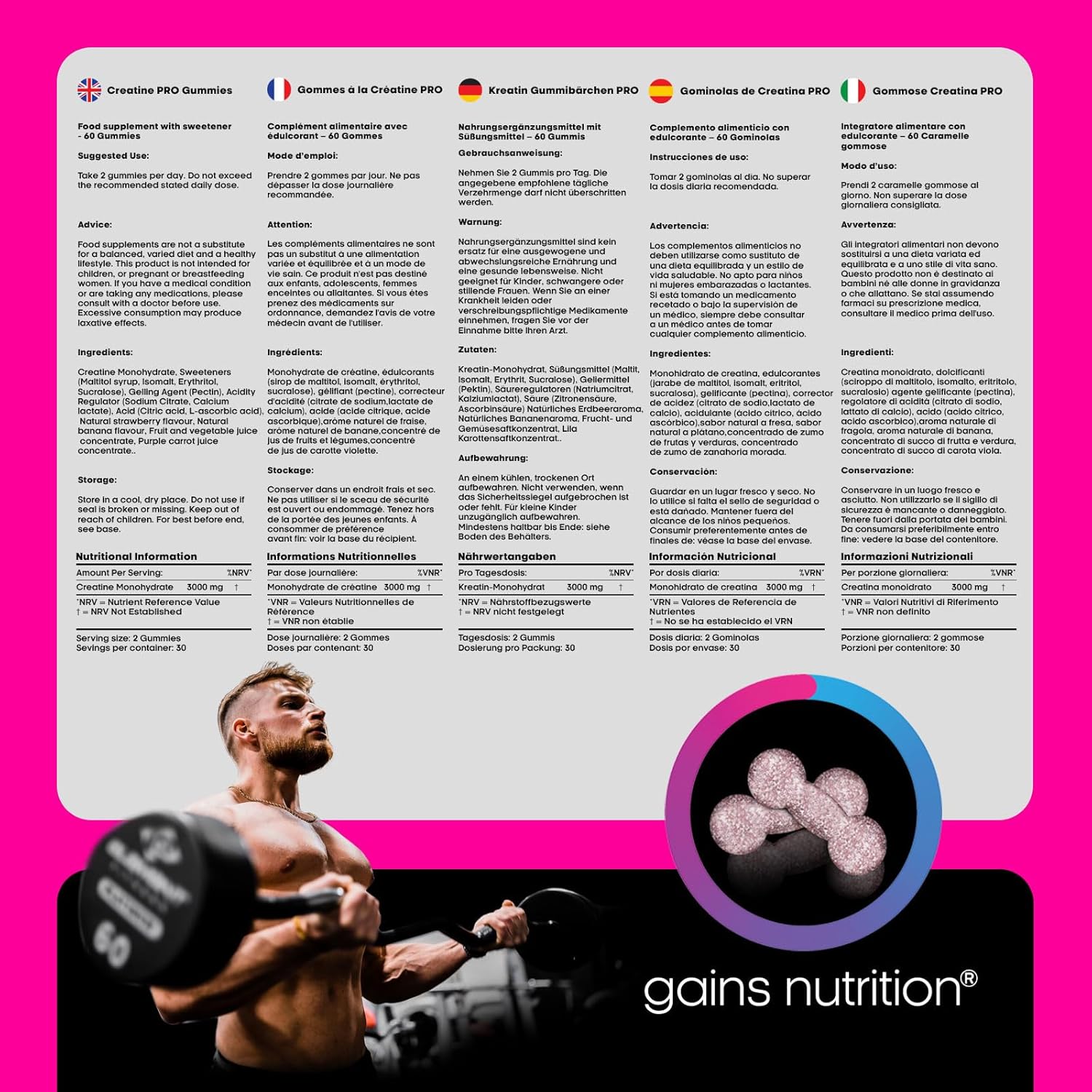 THE COMPLEMENT YOU NEED – Whether you’re an athlete looking for maximum performance, a bodybuilder who wants to gain muscle mass, or just someone who wants to get in shape, our Creatine Pro gummies are the ideal food supplement to reach your goals.”