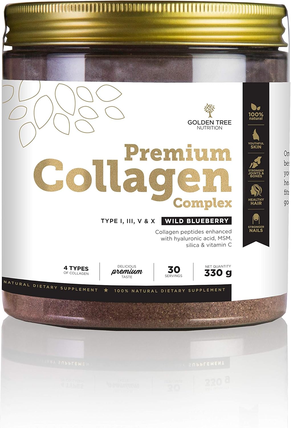 Best quality, no additives. Golden Tree Premium Collagen Complex is 100% natural and made without artificial sweeteners, added sugars, stearates, fillers, binders, bulking agents or additives of any kind. This all-natural collagen powder contains no GMOs, preservatives or allergens like nuts, gluten or dairy.
