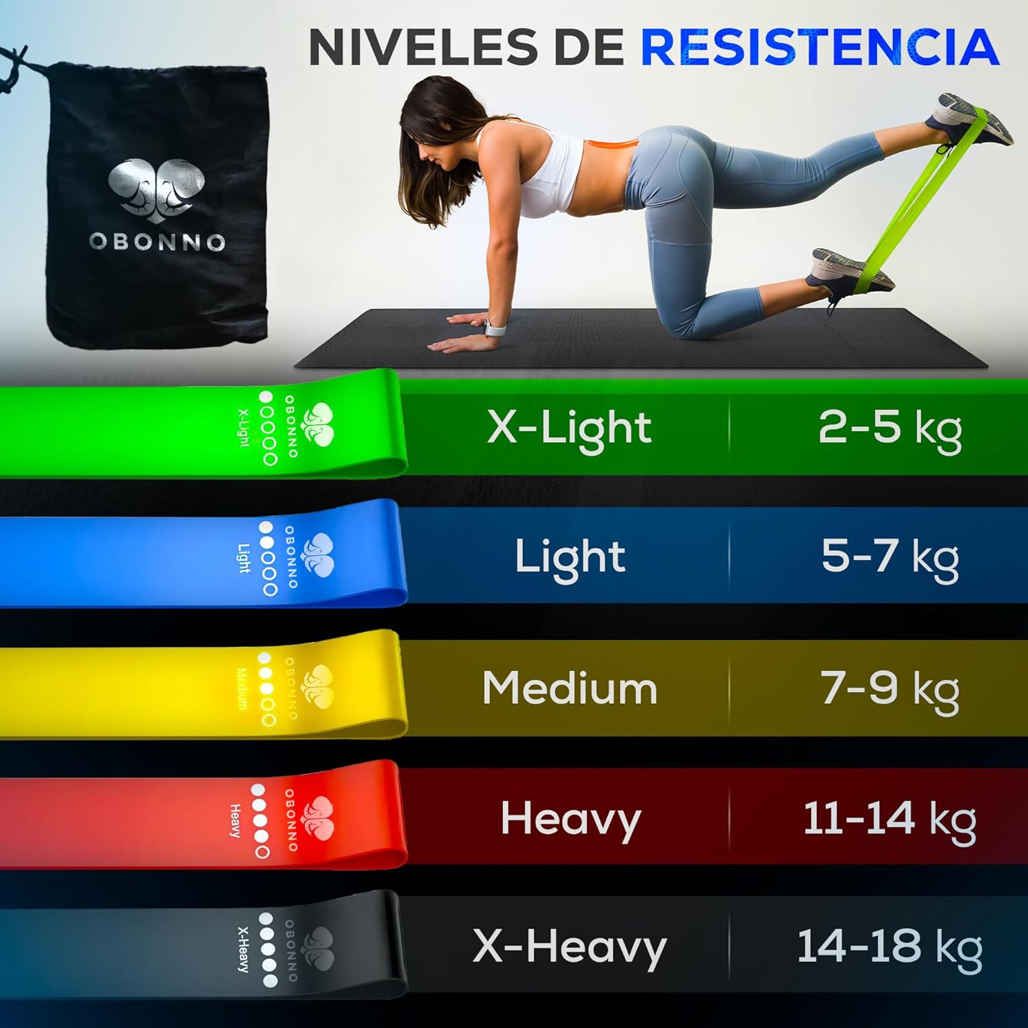 With 5 fitness bands included: The elastic bands are made of durable and resistant materials, ideal for bodybuilding, yoga, Pilates or rehabilitation. Each elastic fitness band offers a different level of resistance to suit your workout in your home gym.