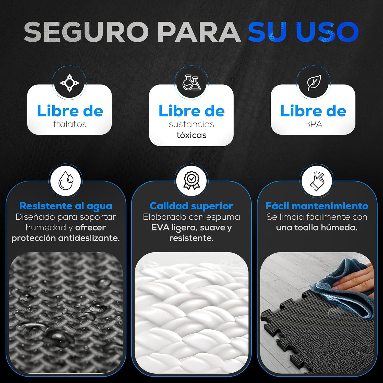 Easy assembly and unlimited expandable versatile design: The puzzle mat design allows you to quickly assemble and disassemble the pieces according to the available space. Ideal for home or gym use, creating a non-slip and comfortable surface.