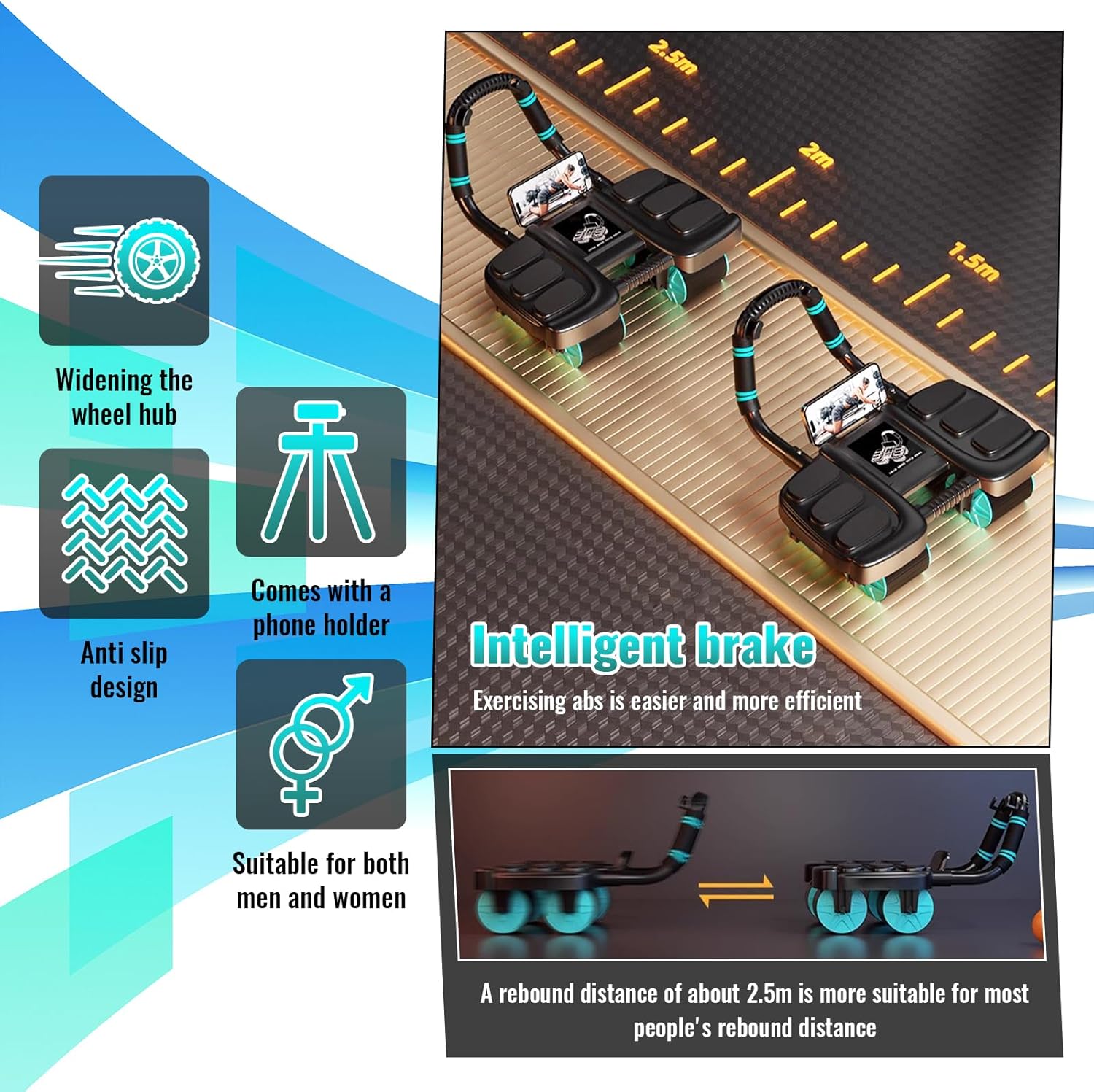 VERSATILE DESIGN – Our ab rollers are ergonomically designed and come with 6 elbow pads made of soft foam to protect your elbows for your home workouts. The abdominal wheel adopts automatic rebound technology, equipped with an intelligent auxiliary brake system and a built-in brake device to ensure that the steel rebound is smoother. The innovative automatic rebound function makes your exercise easier and more efficient