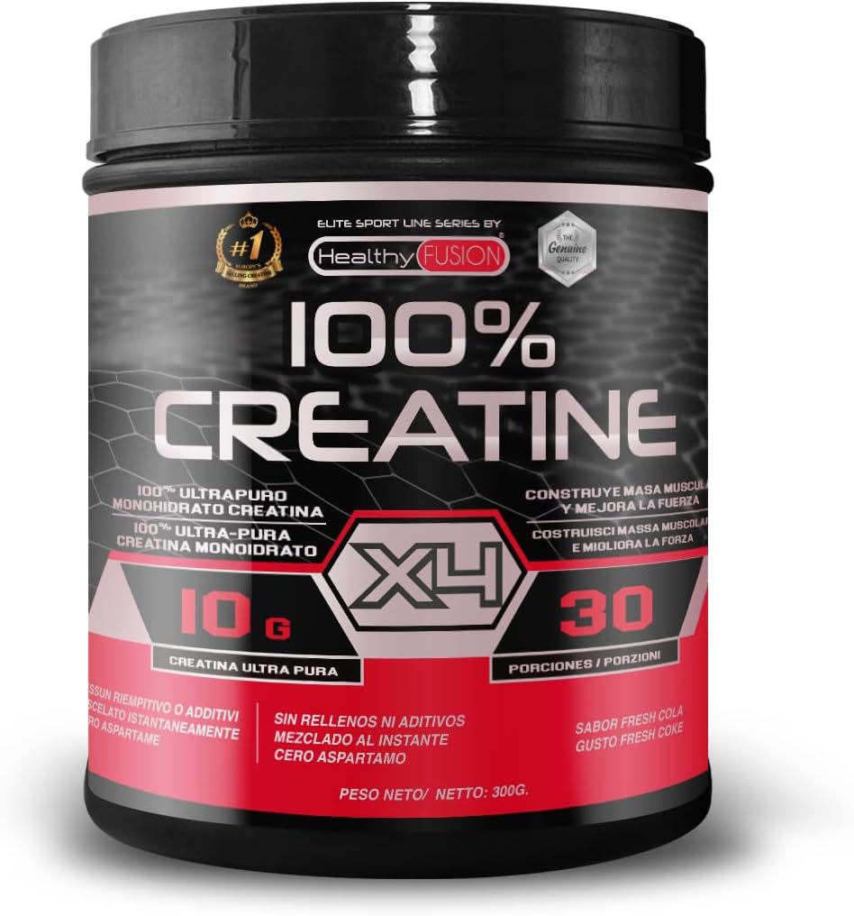 Healthy Fusion 100% Creatine Monohydrate, High Dose | 10g of Creatine per intake | Promotes Muscle Growth and Improves Physical Endurance | High Solubility | 300g Cola Flavor