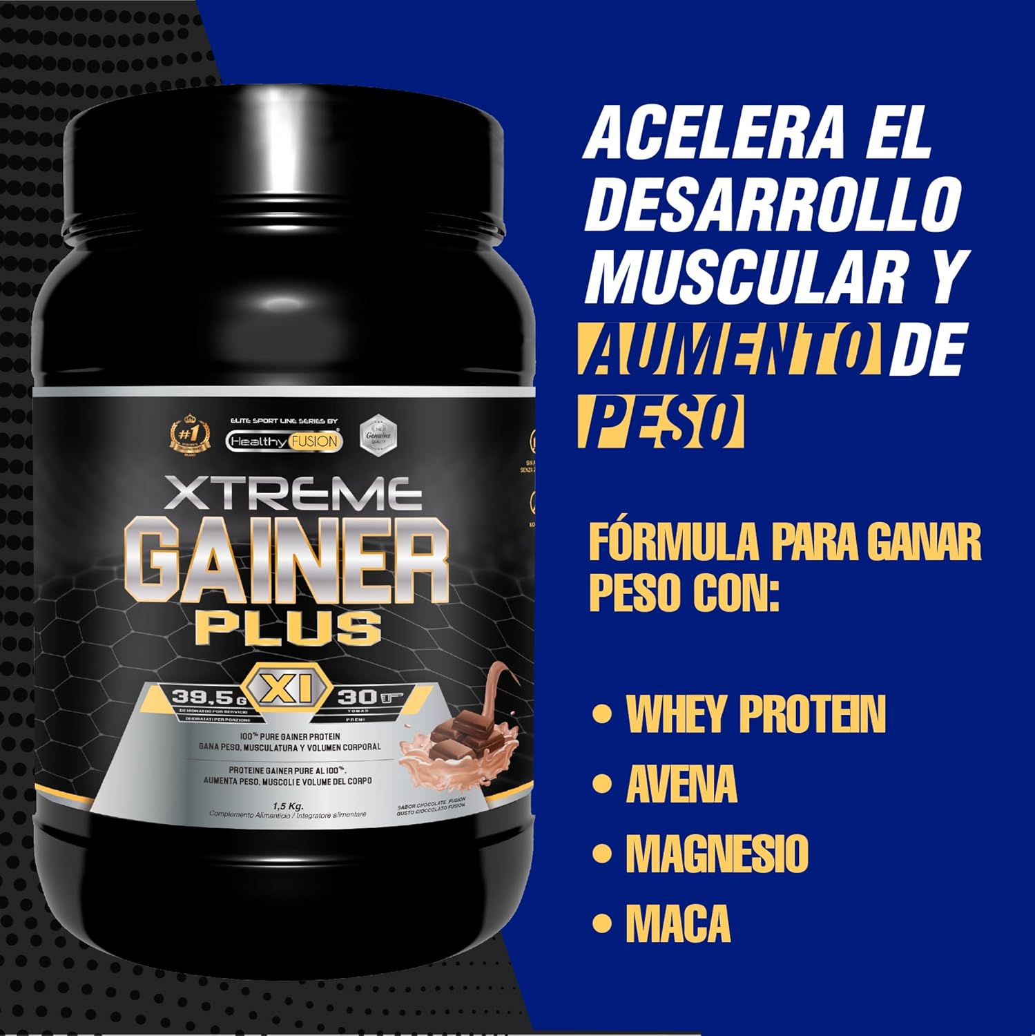 Healthy Fusion Extreme Gainer with Protein Whey Magnesium, Oatmeal and Maca High in Carbohydrates Weight Gains Contributes to Muscle Growth Chocolate Flavor 1.5 kg