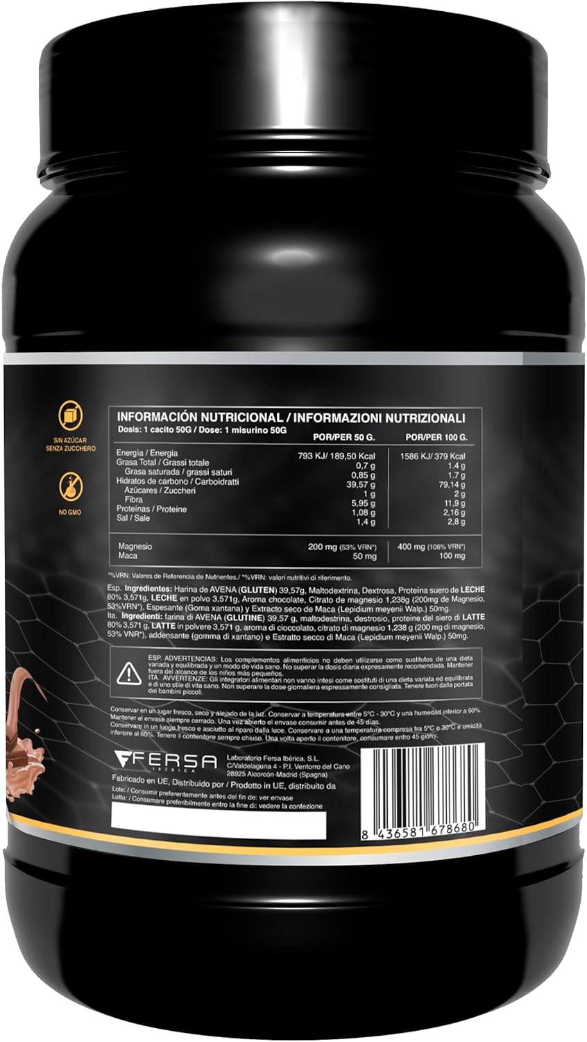 Gain weight and volume – Thanks to its rich formulation of Oatmeal, Whey Protein, Maca and Magnesium of high calorie content, you will gain weight quickly and effectively. Along with your workouts you get an effective weight and muscle gain.